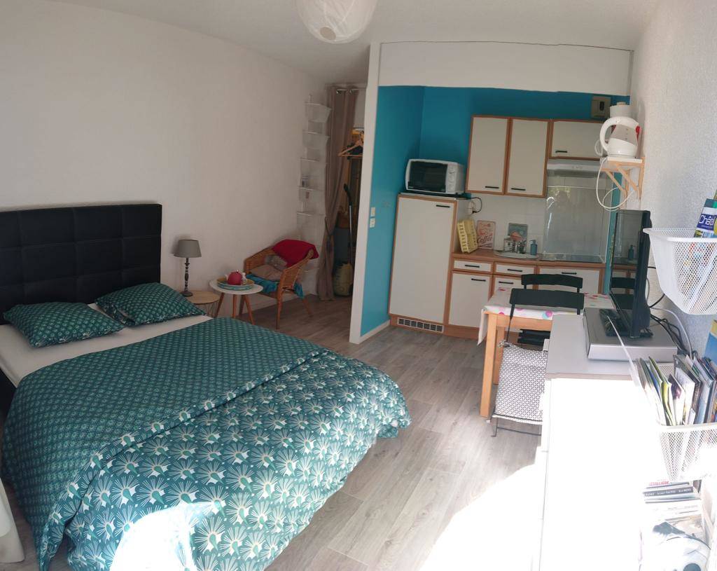 Studio ensoleillé, rénové, 3è étage d’une résidence sécurisée « les Mascareignes » à Châtel-Guyon. Surface de 21m² avec balcon de 4 m². Stationnement privatif individuel avec badge sécurisé, ascenseur, cave privative.