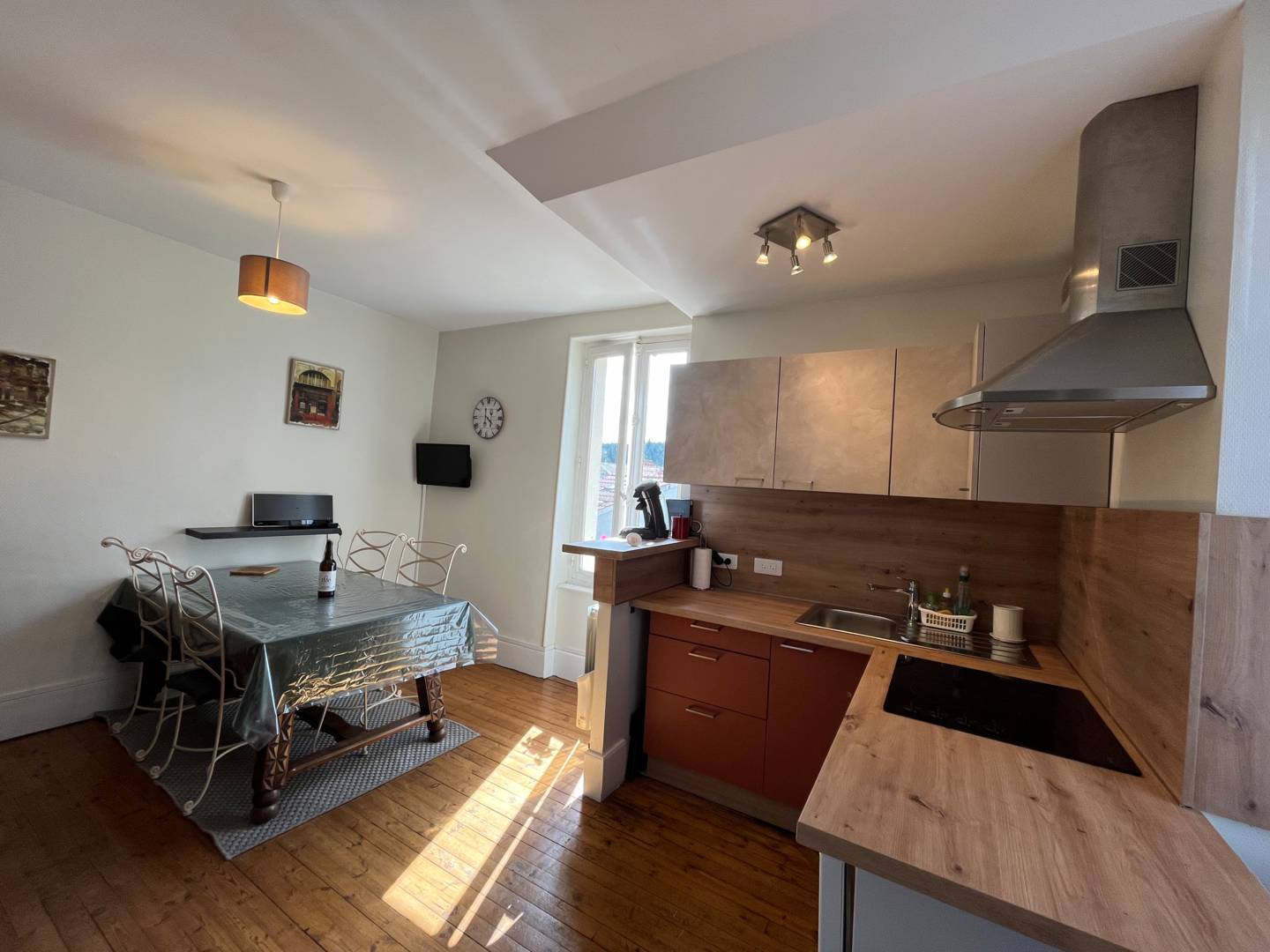 Cette maison très calme, est située sur les hauteurs du vieux centre bourg, à proximité des thermes, du parc thermal, des commerces. Composée – d’une salle à manger / cuisine (équipée lave vaisselle, four, micro-ondes et réfrigérateur-congélateur), d’un salon avec canapé, fauteuil et télévision écran plat (accès courette); d’un(…)