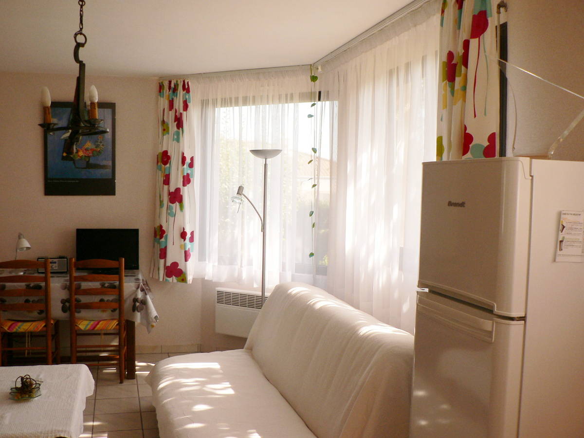 L’appartement comprend une chambre, une grande salle de séjour avec canapé convertible et un coin cuisine, une salle de bain rénovée et WC.