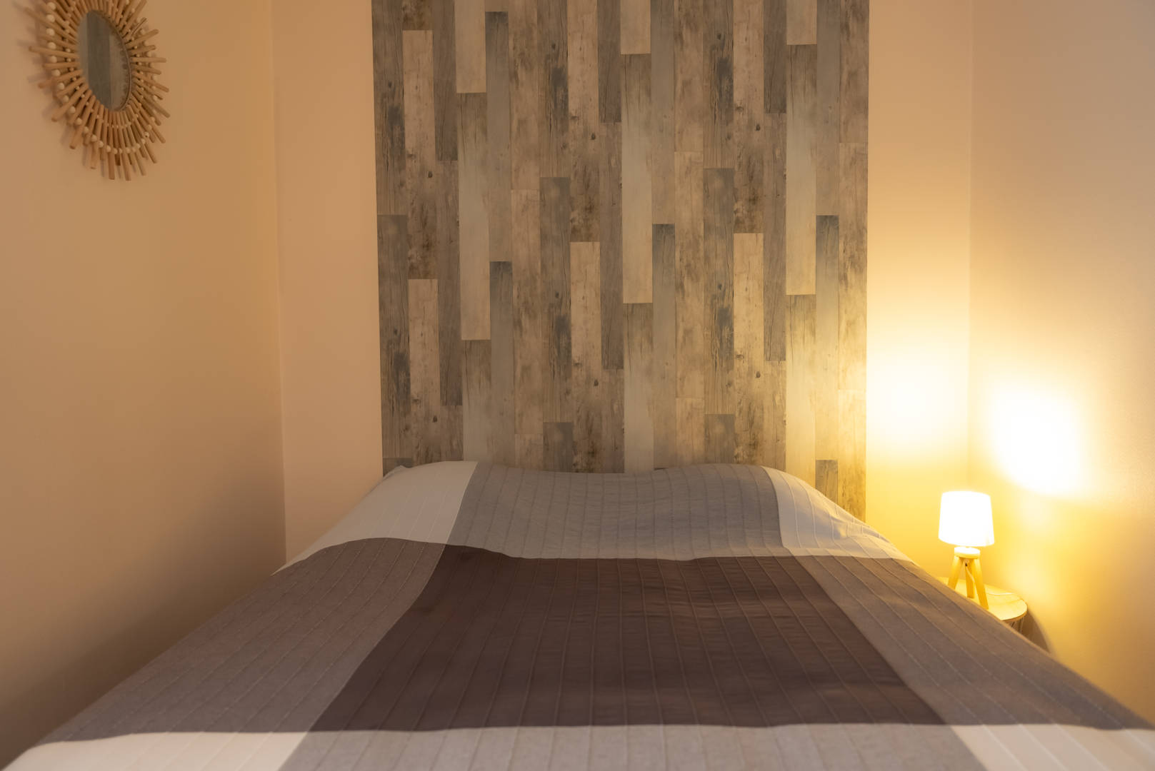 Studio composé d’une pièce principale avec un coin cuisine équipé (réfrigérateur-congélateur, four, micro-onde); un coin séjour avec canapé; un grand lit 2 personnes 180 cm et une salle d’eau. Lave Linge. Wifi. Terrasse avec salon de jardin et barbecue.