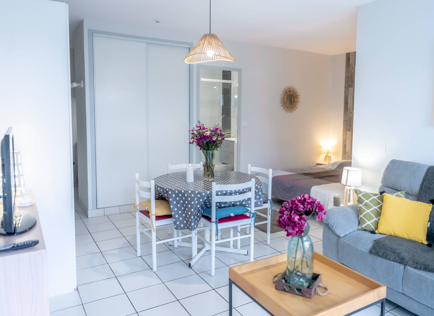 Studio de 35 m² de 1 à 2 personnes situé au rez de chaussée d’une résidence de 10 logements sur 1 étage.