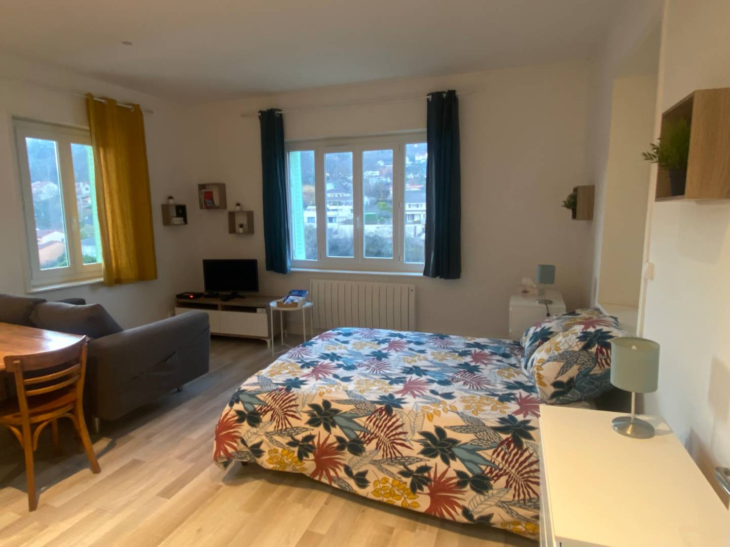 Agréable studio meublé tout équipé, classé 3 étoiles donnant sur parc situé au 4è étage avec ascenseur dans une résidence sécurisée. A 200 mètres de l’établissement thermal, à proximité des commerces du centre-ville, à 4 minutes à pied du casino, 12 minutes à pied du Parc Ecureuil et 10 minutes en voiture de Volvic. Parking gratuit en face de la résidence. Se compose d’une pièce de vie avec 1 lit en 140, un coin salon avec TV. Cuisine toute équipée avec un coin repas. Salle de bain avec WC et lave-linge.