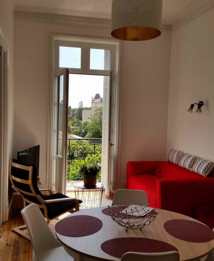 Loue appartement dans la très belle résidence « du parc », sécurisée, toute proche de l’établissement thermal.Entièrement refait à neuf, très lumineux avec de beaux volumes et beaucoup de charme. Très belle vue sur le parc thermal.