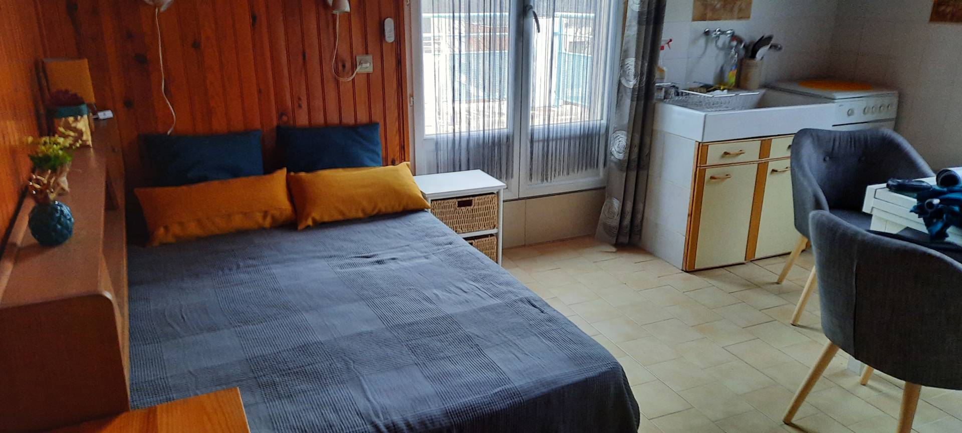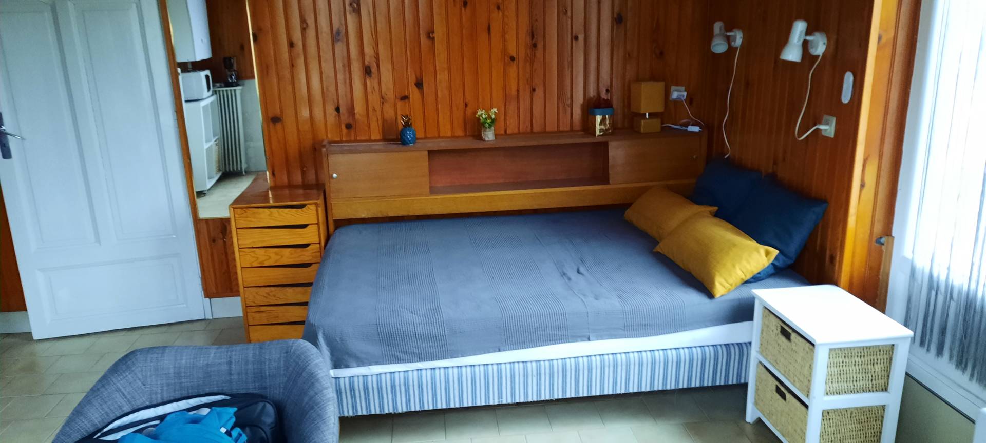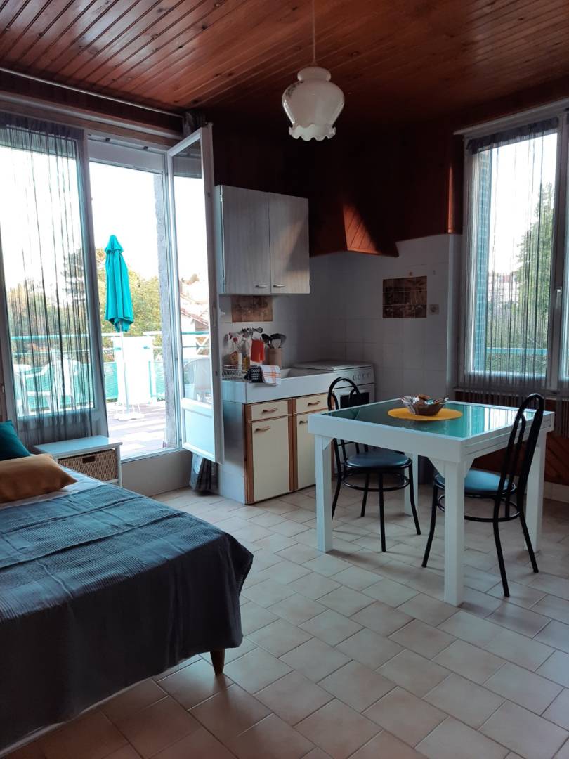 Confortable studio meublé de 18 m2, situé au rez-de-chaussée de la villa. Double exposition, avec une terrasse privative de 25 m2, équipée de table, chaises, transat et parasol et une belle vue sur château Miraton et le calvaire.