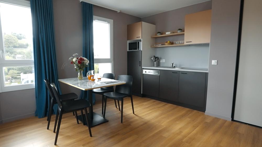 Vous pouvez choisir de prendre vos repas dans votre appartement équipé d’une cuisine fonctionnelle, ou d’opter pour le restaurant de la résidence. Toutes les combinaisons deviennent possibles.
