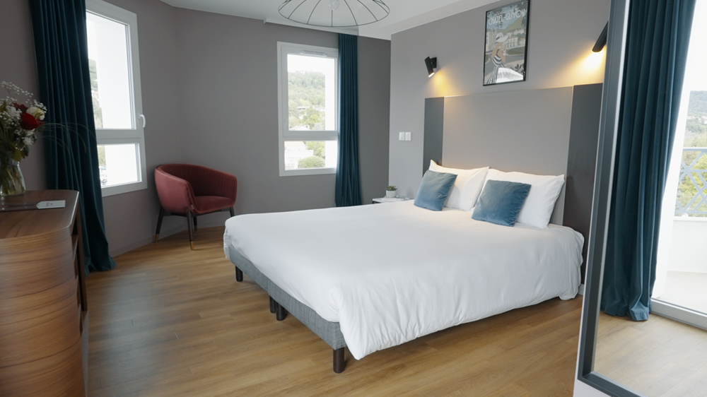 Du studio à la suite 2 pièces, pouvant accueillir de 1 à 4 personnes, vous retrouverez tout l’espace nécessaire et les services essentiels pour vivre une expérience unique et totale de votre cure thermale.