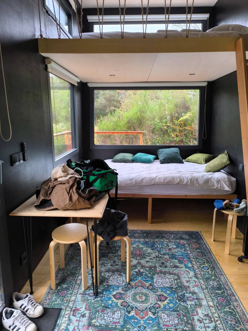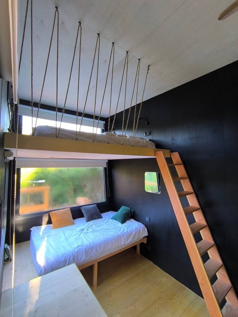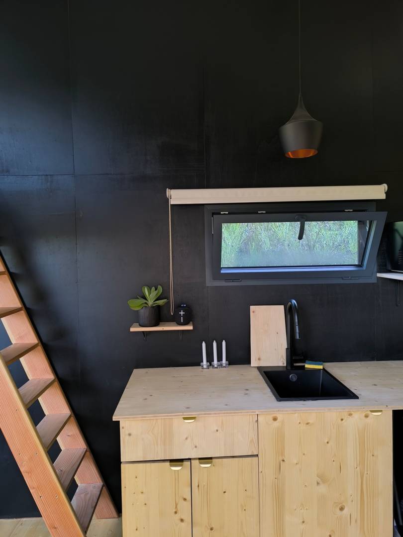 Nos tiny sont reliées à l’eau et à l’électricité. Elles sont dotées d’un chauffe-eau, d’une plaque de cuisson, d’un four combiné, d’un réfrigérateur, d’une douche spacieuse, de toilettes sèches et d’un coin brasero pour passer un bon moment sous les étoiles.