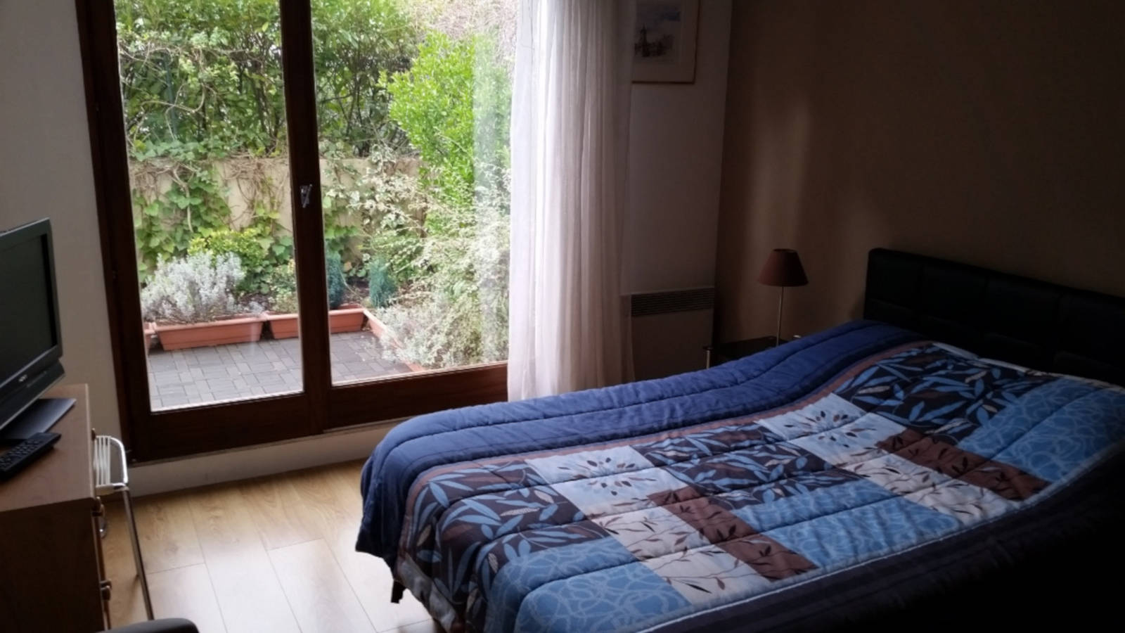 F2 de 54m² avec une très agréable terrasse de 36m² donnant sur le parc; idéalement situé près des commerces et des bus. Très bien équipé, décoration soignée.