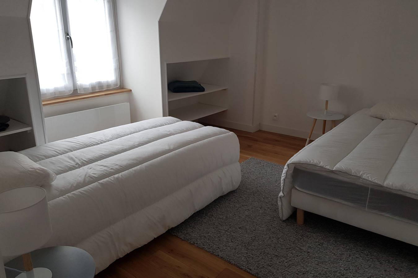 • Une première chambre, belle hauteur sous plafond avec couchage 180×200. Commode 6 tiroirs. 2 oreillers à mémoire de forme 60×60 et 2 de 50×70. • Une deuxième chambre cocooning avec 2 lits 90×190 pouvant être réunis pour former un lit double. Oreillers à mémoire de forme 60×60. Rangement en sous pente.
