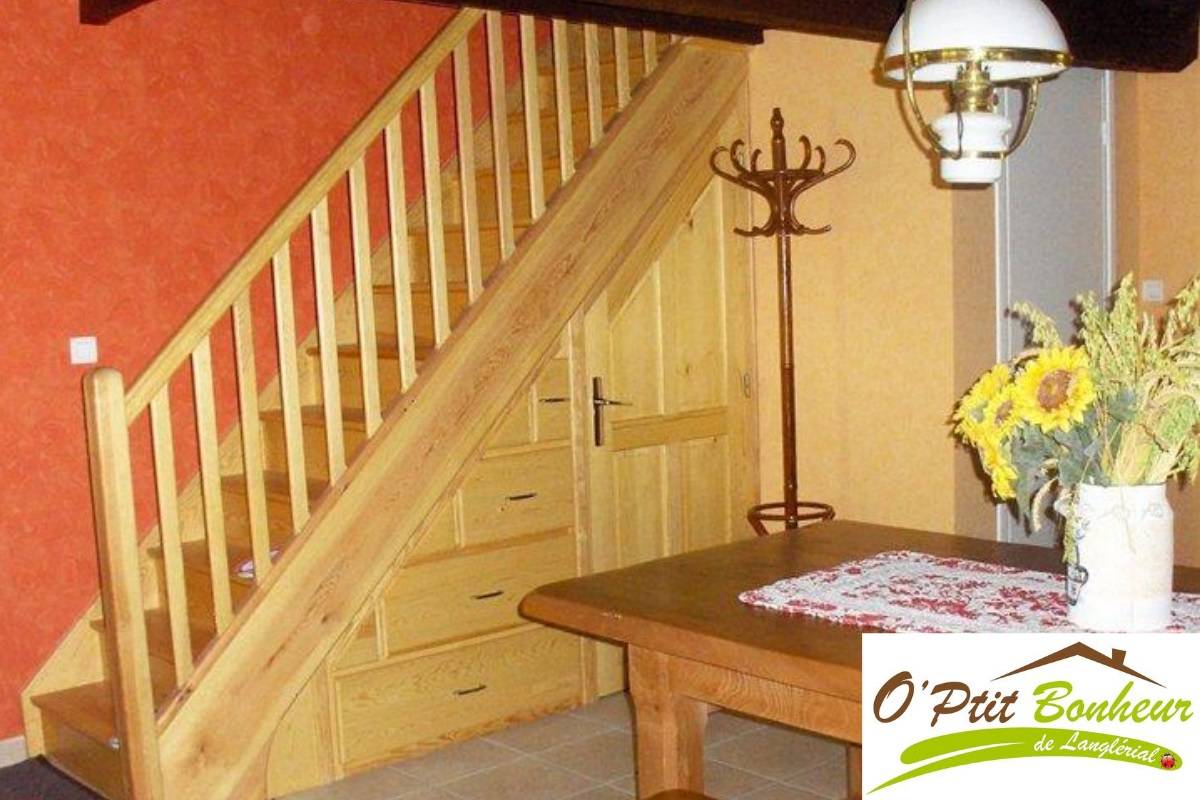 Aménagement simple et fonctionnel : poêle suédois et TV (écran plat). Cuisine avec 4 plaques de cuisson. À l’étage : 2 chambres. Vue sur la vallée et les alentours.