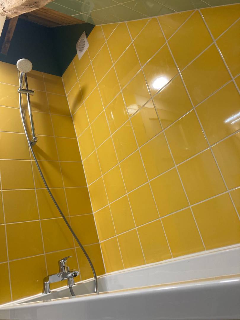 Ce gîte est situé au-dessus du studio, mais avec une entrée indépendante par le jardin au deuxième rez-de-chaussée. L’isolation acoustique, en matériaux naturels (bois et fibres de lin/chanvre), est parfaite.
