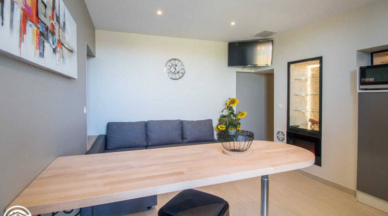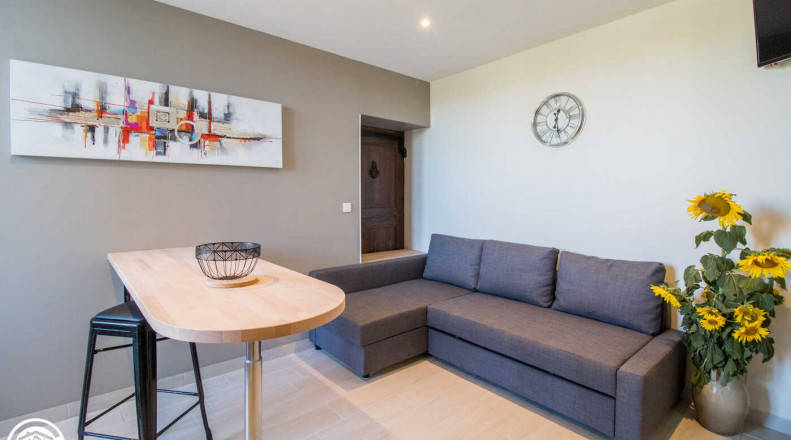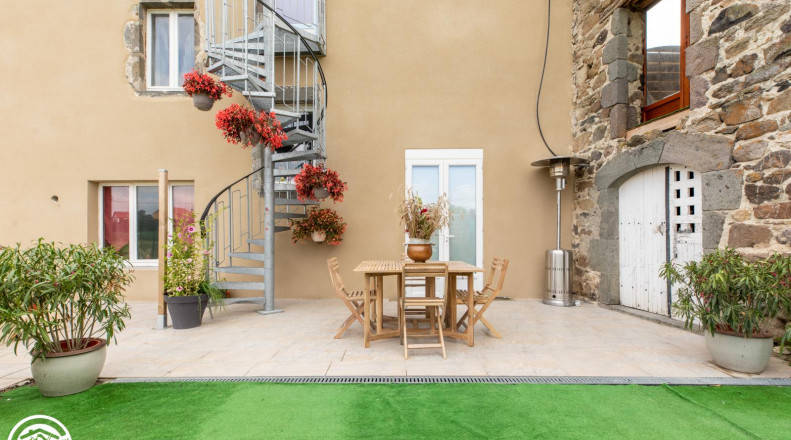 Le propriétaire, agriculteur de profession, sera ravi de partager son expérience et de vous conseiller sur de nombreuses activités possibles. Pour des moments de détente, ce sera dans le grand spa (accessible sur demande) qui est niché dans l’un des recoins de la maison dans un abri décoré avec goût (accessible pour le moment par la maison du propriétaire) et commun avec le deuxième gîte. Possibilité de réserver les prestations d’un coach sportif et de massage réflexologie plantaire sur demande auprès du propriétaire. Situé à l’arrière de la charmante maison vigneronne du propriétaire, le gîte se compose d’un séjour-cuisine moderne et agréable avec un canapé lit (2 enfants de – 12 ans acceptés gratuitement dans canapé lit 140×200) ainsi que d’une suite parentale avec un lit 140 et une salle d’eau ouverte sur la chambre. WC privatif. A l’extérieur, vous profiterez d’une jolie terrasse végétalisée avec salon de jardin et barbecue. Parking privatif à proximité immédiate. Chauffage inclus. Pour votre confort, le lit est fait à votre arrivée et le linge de toilette est fourni, ménage inclus. Vous adorerez le producteur de fromages de chèvre, le vendeur de fruits et légumes, l’affineur accessibles à pied depuis le gîte et le marché BIO à Montaigut-le-Blanc. De nombreuses visites à proximité : Saint Nectaire, Murol, Besse et Saint Anastaise, Issoire, Saint Saturnin, Montpeyroux, Grottes de Jonas, Gergovie, les Puys Sancy et Puy de Dôme, les lacs: Chambon, Aydat, Pavin… Commerces et services à Montaigut-le-Blanc 4 km et principalement à Champeix 7 km. Gîte déconseillé aux personnes à mobilité réduite (accès par deux marches). Piscine municipale à 4 km.