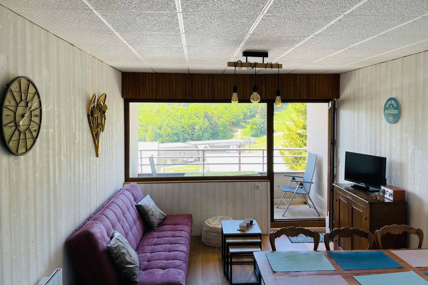 Appartement Super Besse avec vue sur pistes.Situé à 100m des pistes, cet appartement de 50m2 est prévu pour 6/7 personnes maximum.Comprenant un salon avec cuisine ouverte équipée, 2 chambres, salle d’eau, wc séparé, balcon ainsi qu’une cave.