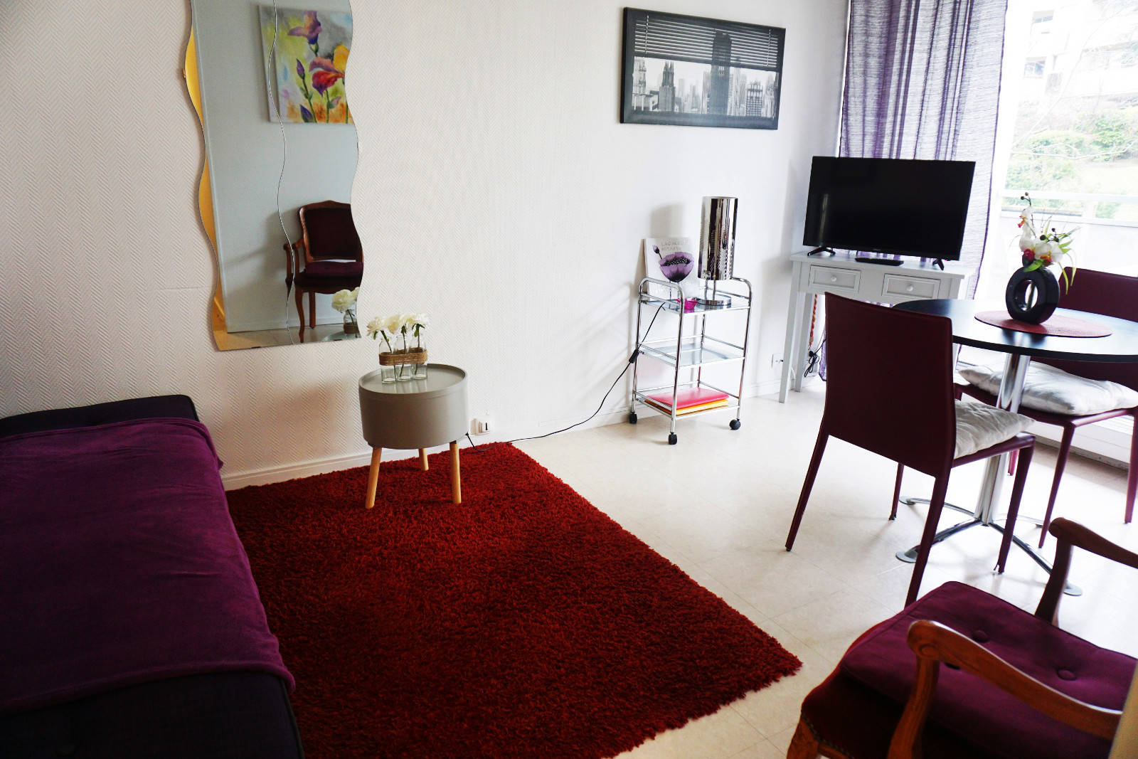 F2, meublé de 32m², très clair, lumineux, exposition sud/ouest, calme avec vue sur le parc.