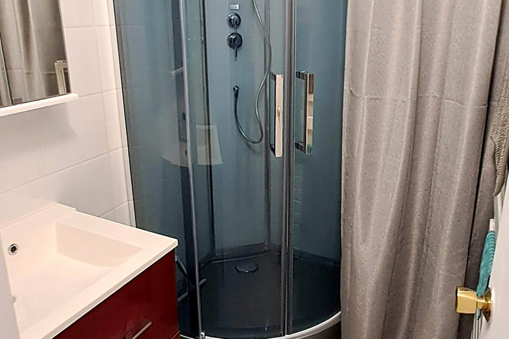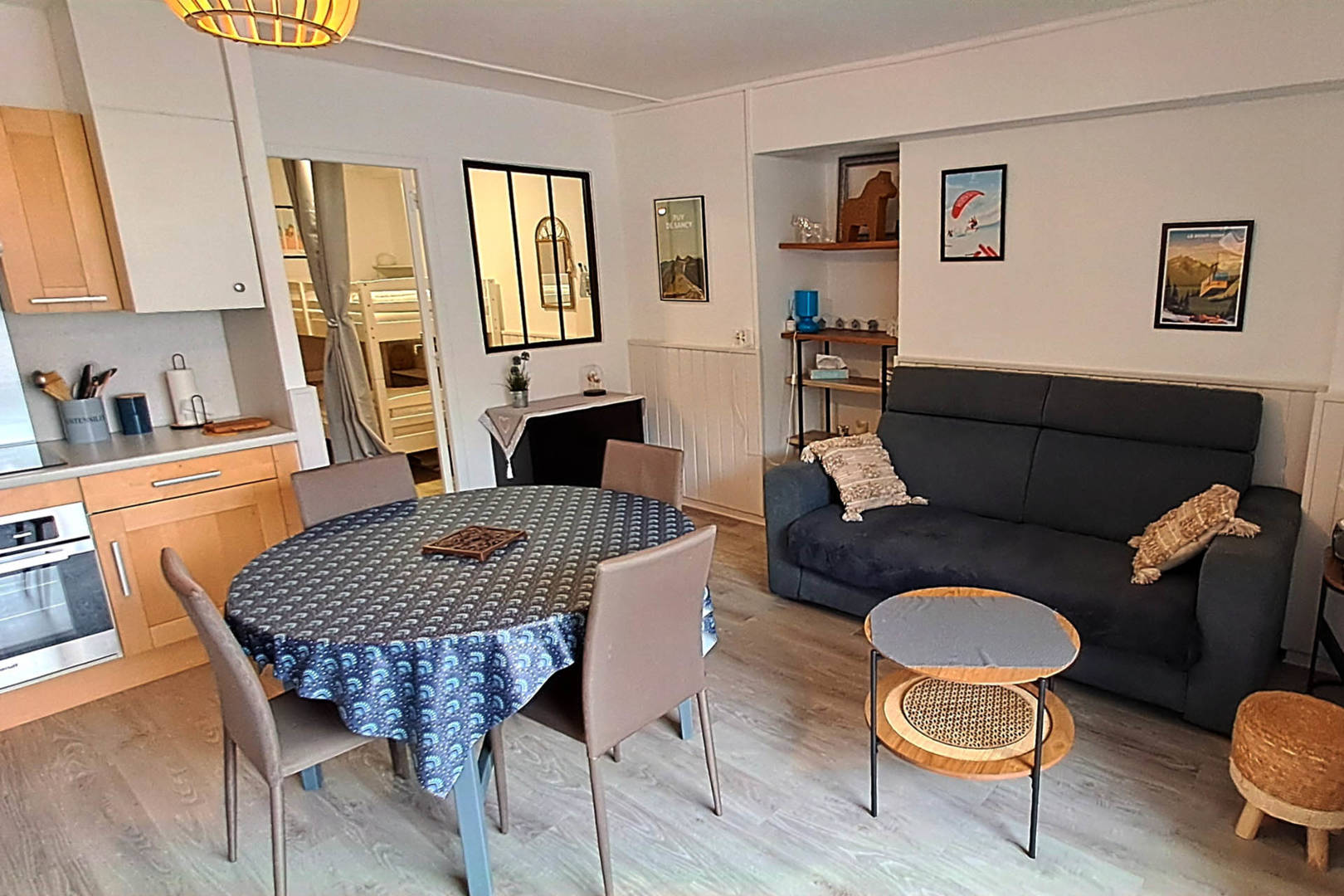 Appartement refait à neuf de 45m² avec salon-séjour-cuisine, une chambre séparée et un coin montagne, un balcon de 7 m², une salle de bain avec douche et WC séparés.