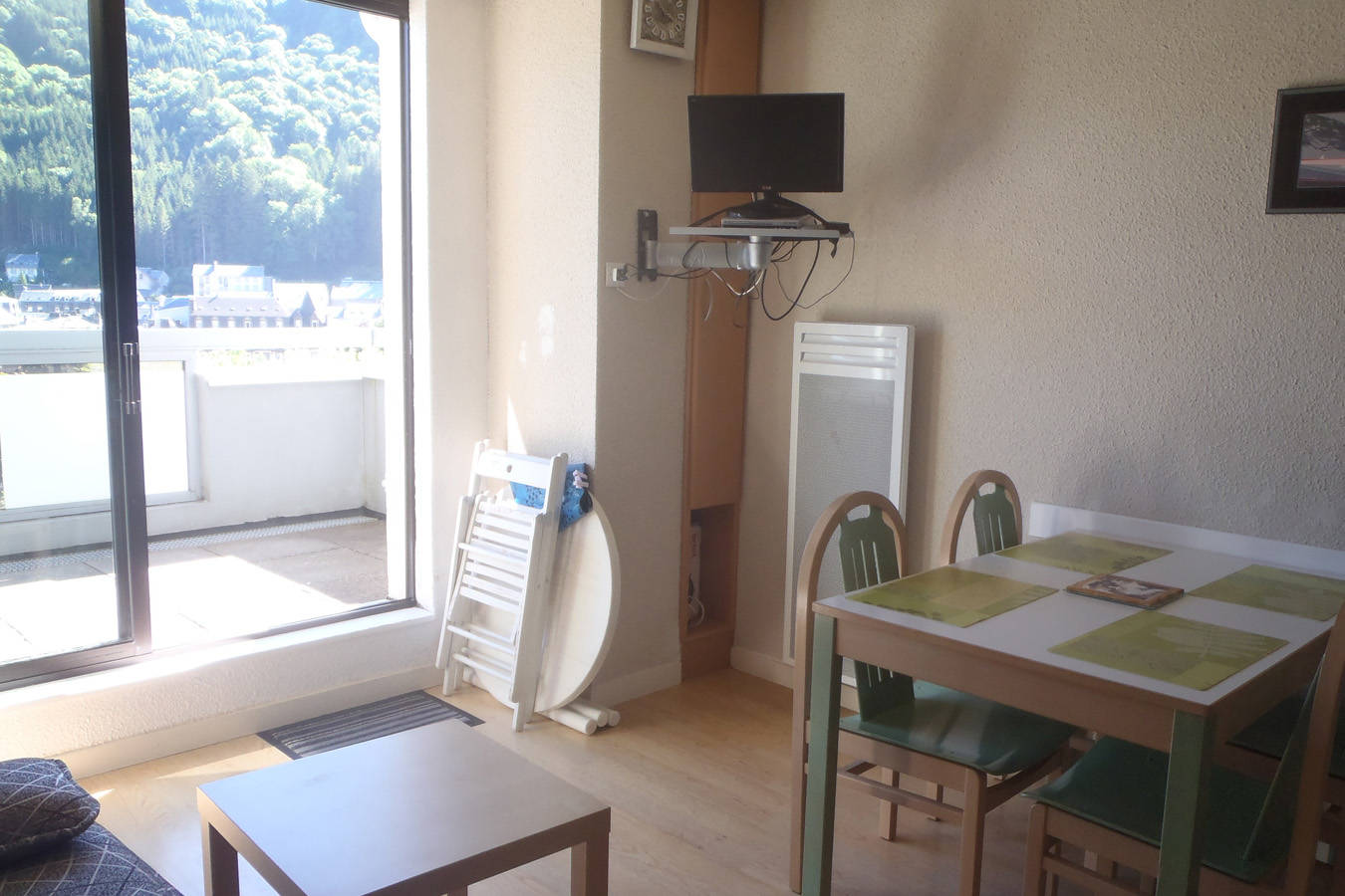 Situé à 300 m des thermes et offrant une vue imprenable sur la ville, ce charmant appartement est doté d’un grand balcon avec salon de jardin.