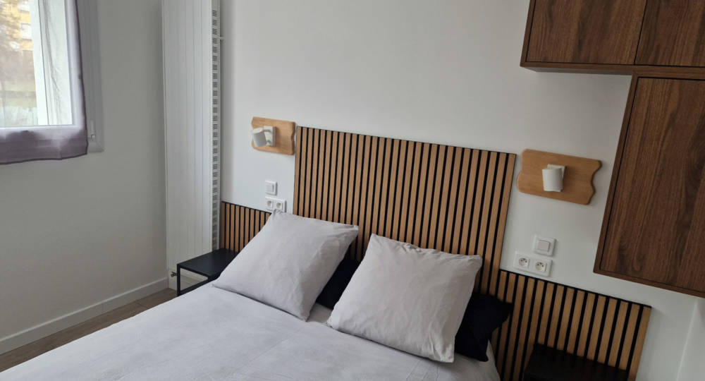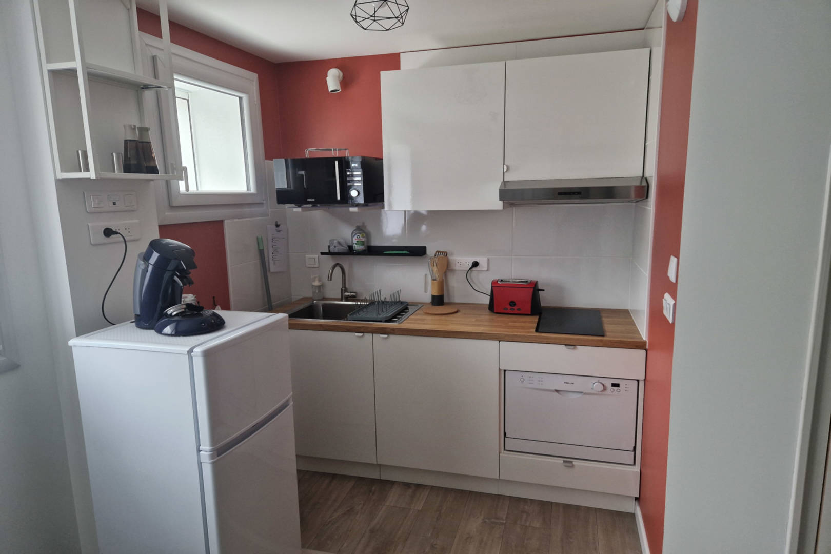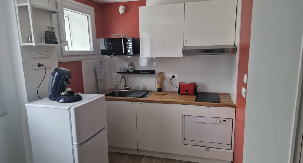 Nous nous situons entre 2 voies sans issue, quasiment sans nuisance sonore routière. Ce logement orienté sud est composé d’une pièce principale avec cuisine ouverte, d’une chambre et d’une salle de bain avec WC. Il peut accueillir jusqu’à 4 personnes et dispose d’un BZ en 140 cm dans la pièce principale ainsi que d’un lit en 140 cm dans la chambre. Nous fournissons 1 kit linge de lit par lit et par séjour ainsi qu’un kit linge de toilette par personne et par séjour. Nous ne mettons pas pour l’instant (c’est prévu) ni lave-linge ni sèche-linge à votre disposition. Nous vous proposons pour l’instant les 2 laveries au centre ville. Un forfait ménage vous est proposé durant le séjour à 40€. Nous vous demandons néanmoins de faire le ménage à votre départ, c’est à dire : _ sol balayé et lavé, tous appareils sanitaires (WC, lavabo, douche et évier) propre _ vaisselle faite et rangée _ poubelles vidées et propres. A votre départ vous pourrez laisser les linges de lit et de toilette non lavés en lieu et place où vous les avez trouvés à votre arrivée. Nous acceptons les animaux avec supplément de 4€ par animal et par nuit.