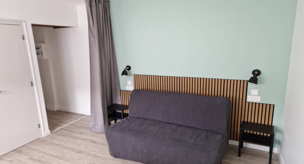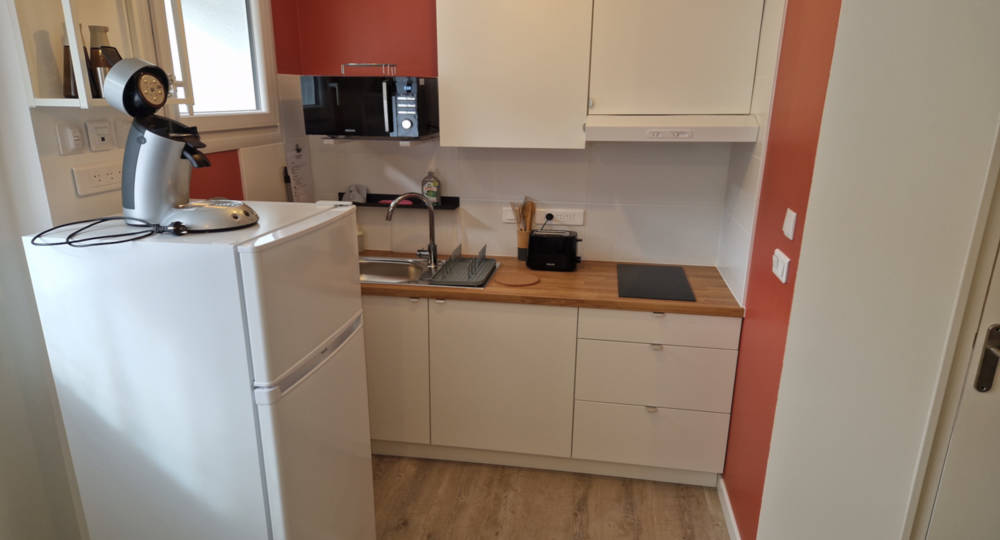 Nous nous situons entre 2 voies sans issue, quasiment sans nuisance sonore routière. Ce logement orienté sud est composé d’une pièce principale avec cuisine ouverte, d’une chambre et d’une salle de bain avec WC. Il peut accueillir jusqu’à 4 personnes et dispose d’un BZ en 140 cm dans la pièce(…)