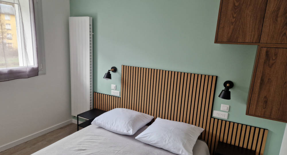 Nous nous situons entre 2 voies sans issue, quasiment sans nuisance sonore routière. Ce logement orienté sud est composé d’une pièce principale avec cuisine ouverte, d’une chambre et d’une salle de bain avec WC. Il peut accueillir jusqu’à 4 personnes et dispose d’un BZ en 140 cm dans la pièce principale ainsi que d’un lit en 140 cm dans la chambre. Nous fournissons 1 kit linge de lit par lit et par séjour ainsi qu’un kit linge de toilette par personne et par séjour. Nous ne mettons pas pour l’instant (c’est prévu) ni lave-linge ni sèche-linge à votre disposition. Nous vous proposons pour l’instant les 2 laveries au centre ville. Un forfait ménage vous est proposé durant le séjour à 40€. Nous vous demandons néanmoins de faire le ménage à votre départ, c’est à dire : _ sol balayé et lavé, tous appareils sanitaires (WC, lavabo, douche et évier) propre _ vaisselle faite et rangée _ poubelles vidées et propres. A votre départ vous pourrez laisser les linges de lit et de toilette non lavés en lieu et place où vous les avez trouvés à votre arrivée.