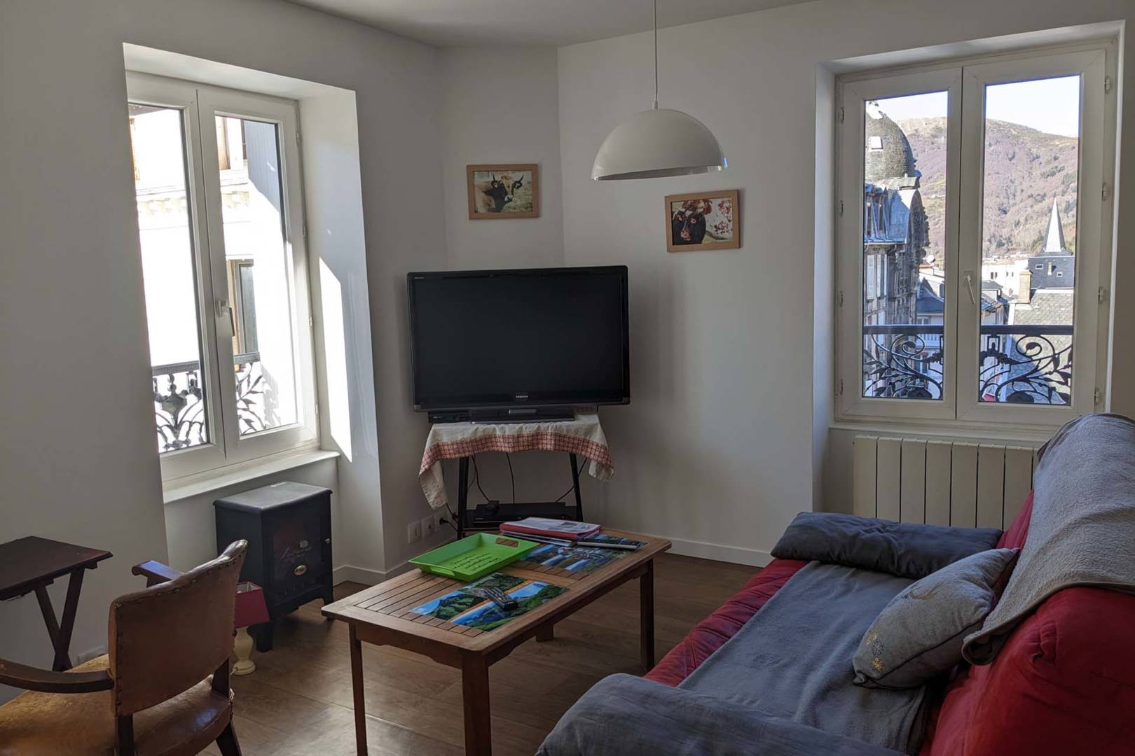 Situé en plein centre-ville, à 30 m des Thermes, 4 ème étage avec ascenseur, sans vis-à-vis. Vue magnifique sur les montagnes. Belle et grande pièce de vie très ensoleillée (3 fenêtres dans la pièce de vie). Très bien isolé, radiateurs à fluide caloporteur. Tout équipé, cuisine aménagée, 2 TV écran(…)
