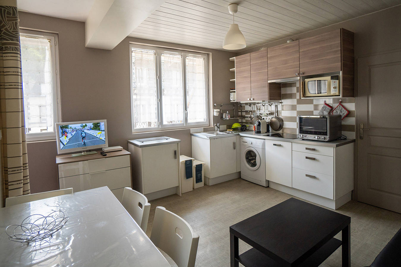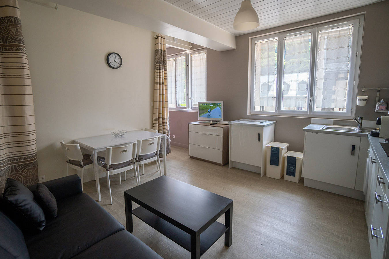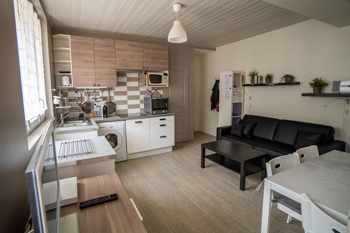 Appartement très agréable avec une belle pièce de vie : cuisine tout équipée ouverte sur la partie salon, canapé convertible confortable servant de second lit (couchage 140). L’espace nuit avec lit 140 et rangement, est fermé par une demi cloison et un rideau pour s’isoler de la pièce principale. Proche(…)