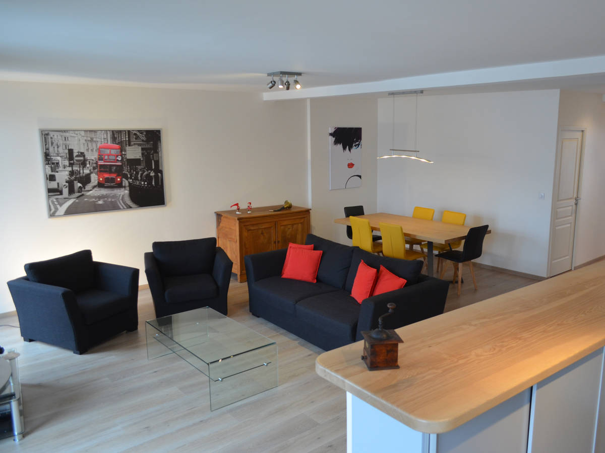 Un très vaste salon/salle à manger de 50 m² ensoleillé toute la journée, grâce à 3 grandes portes fenêtres.