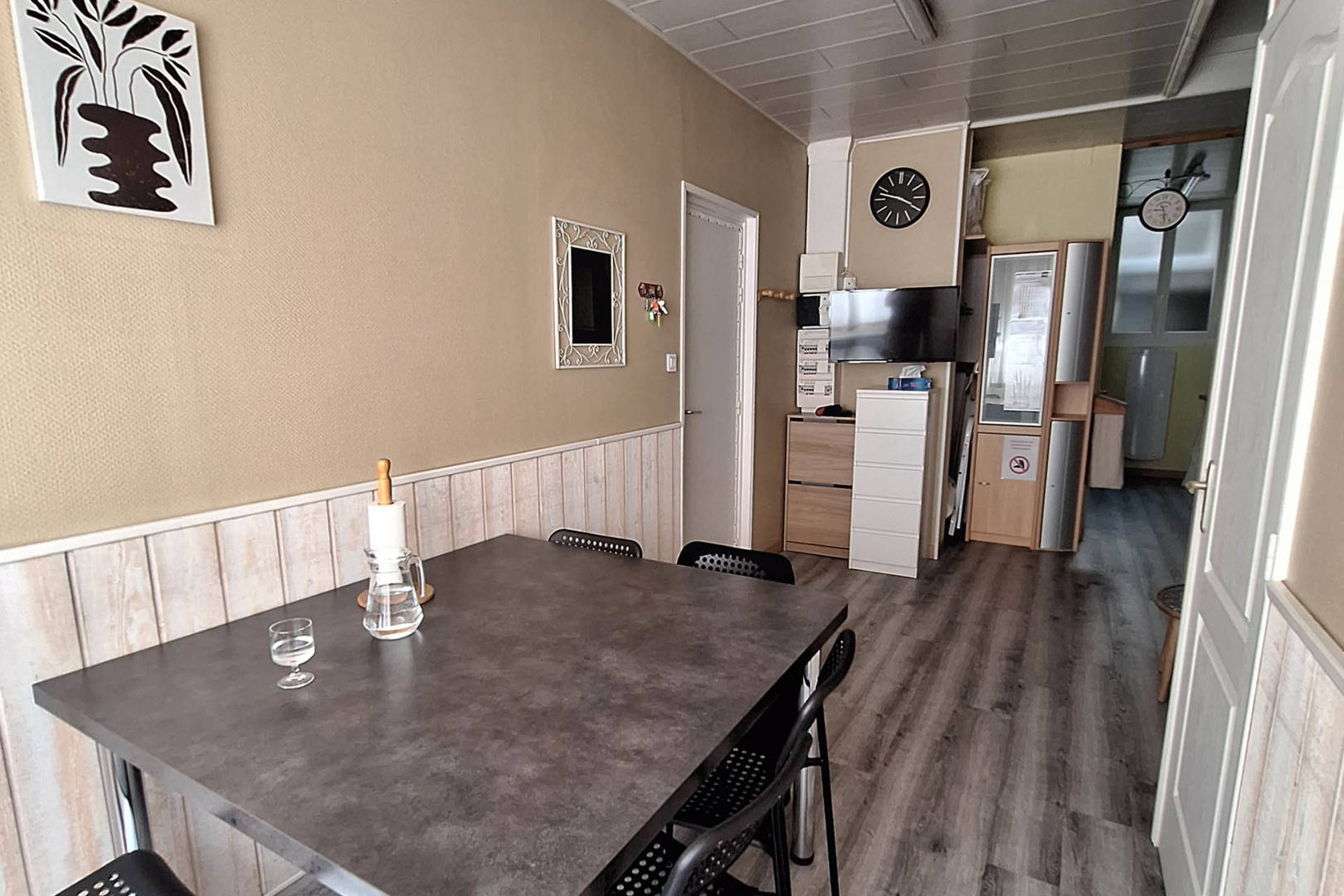 Composé d’une chambre 2 personnes avec rangement + téléviseur, double vitrage.+ lit mezzanine pour 2 personnes + lit bébé avec matelas. Cuisine équipée avec four, four micro ondes, plaque induction, frigidaire, lave vaisselle avec coin repas équipé d’une 2e télévision. Salle de bain avec douche et machine à laver, WC séparé. Aspirateur, matériel de repassage, électroménager. Local pour ski au niveau N-1. Accès internet Wifi.