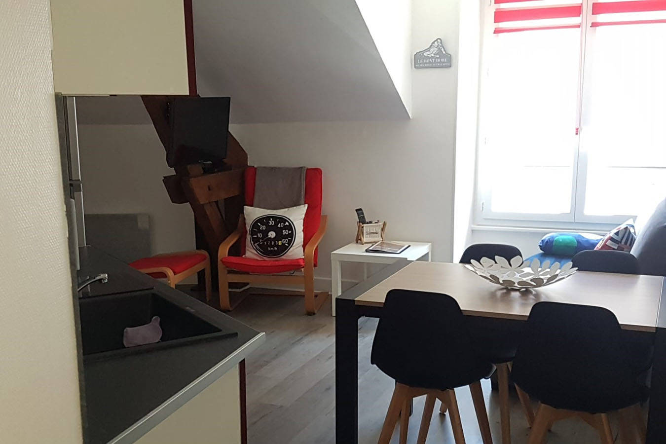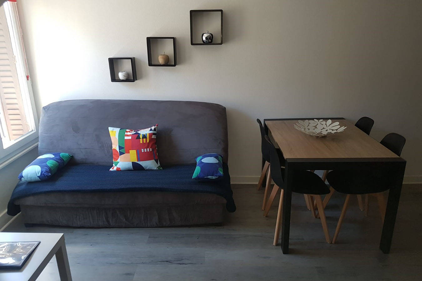 Appartement lumineux pour 4 personnes donnant sur rue piétonne sans stationnement et vue sur les Thermes.