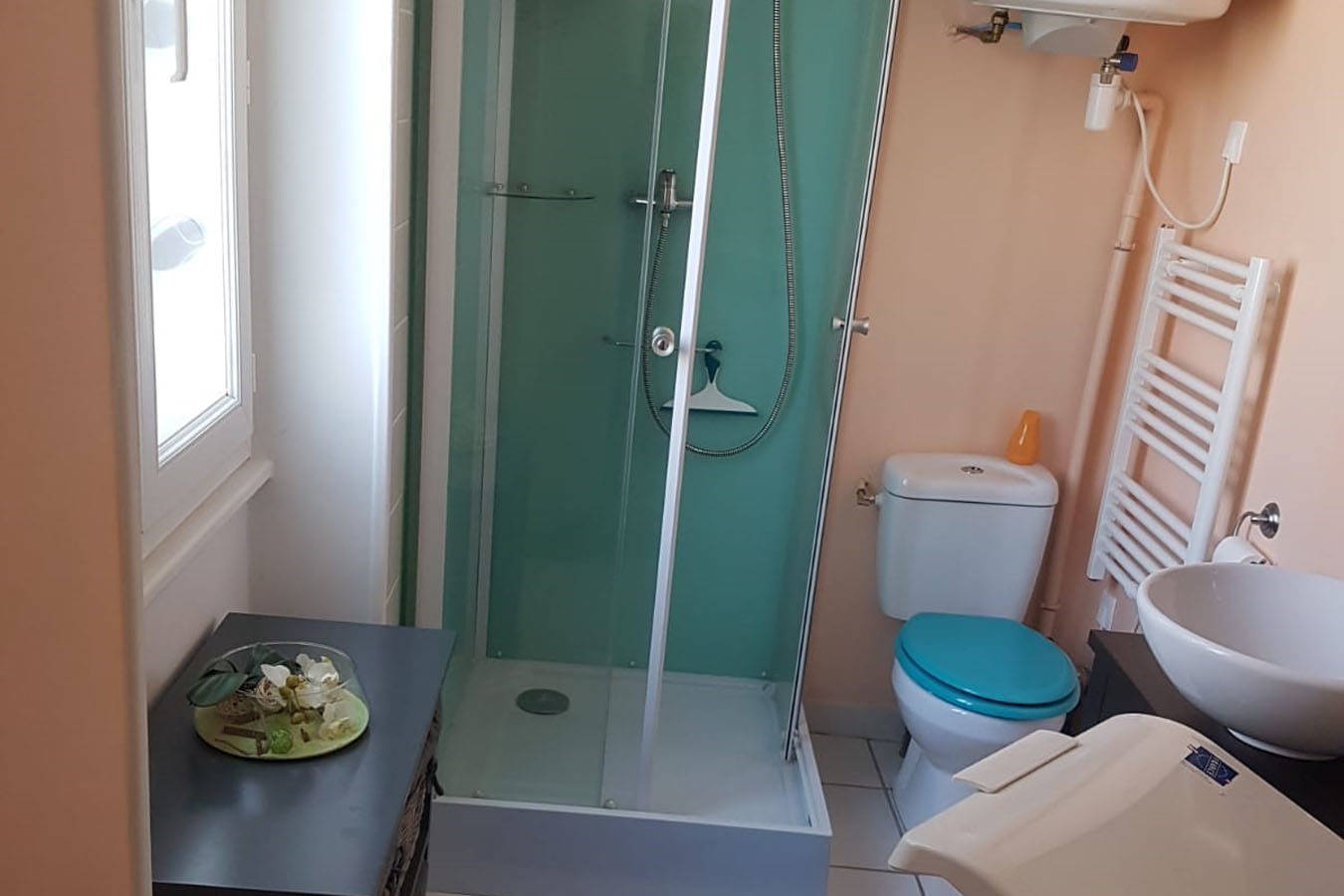 – Salle d’eau avec douche, WC, sèche-cheveux, lave-linge, pèse personne,
