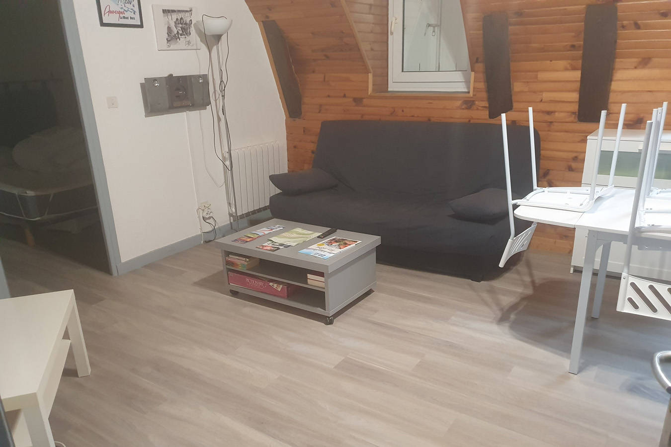 L’organisation du couchage : une chambre avec lit de 140 cm et canapé convertible, confortable pour deux personnes, dans la pièce à vivre. La salle d’eau vient d’être entièrement refaite et optimisée avec une grande douche (105 X 80 cm), lavabo et WC. La cuisine ouverte sur la(…)