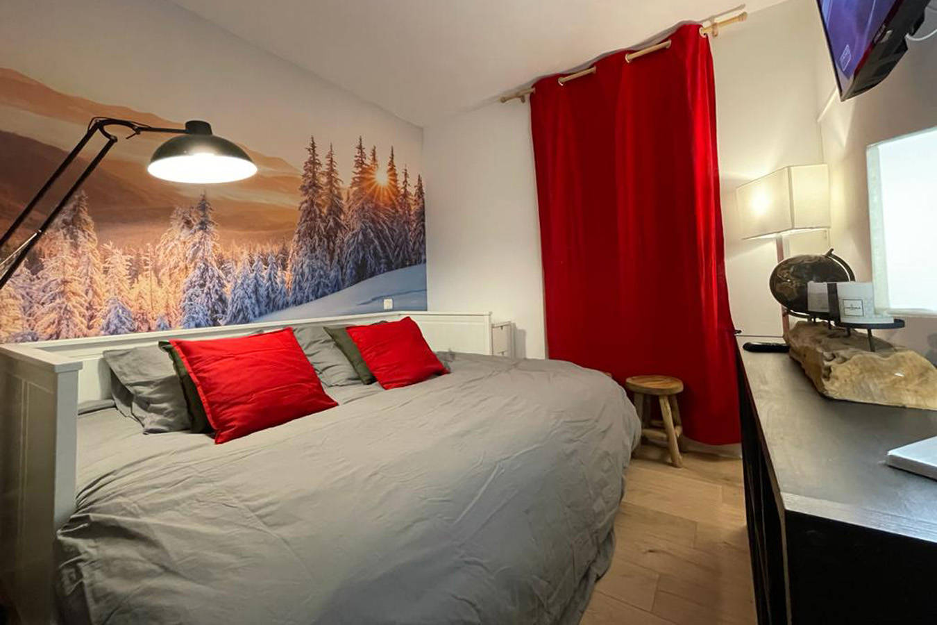 Il est composé d’un séjour avec canapé convertible (160/200 cm), d’une cuisine équipée de deux feux gaz, un four électrique, un micro-ondes, un réfrigérateur(…)