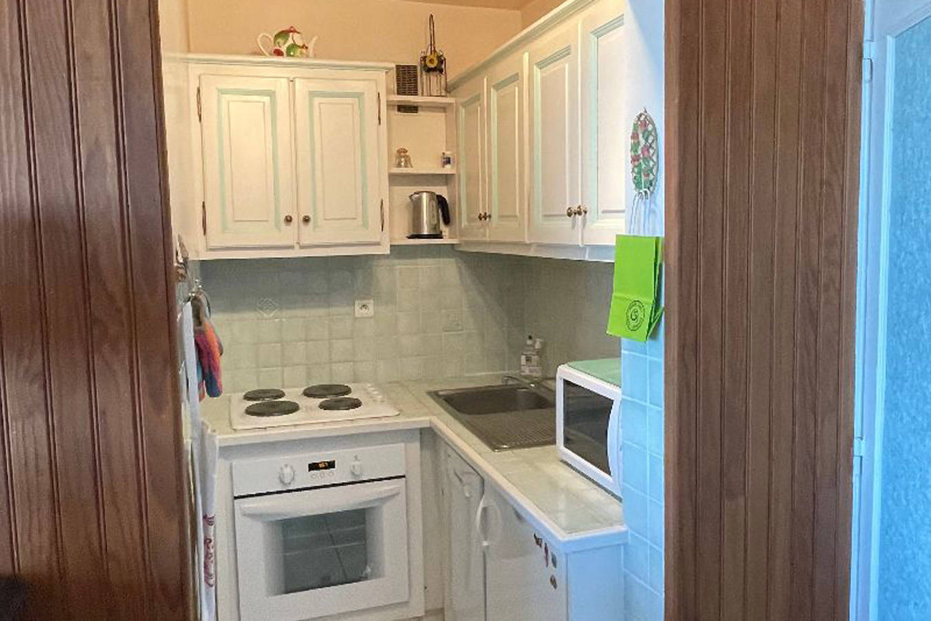 Appartement tout confort, exposé sud/sud-ouest se composant d’une entrée, d’un séjour avec coin cuisine équipée, d’une chambre et d’une SDB (douche – WC).