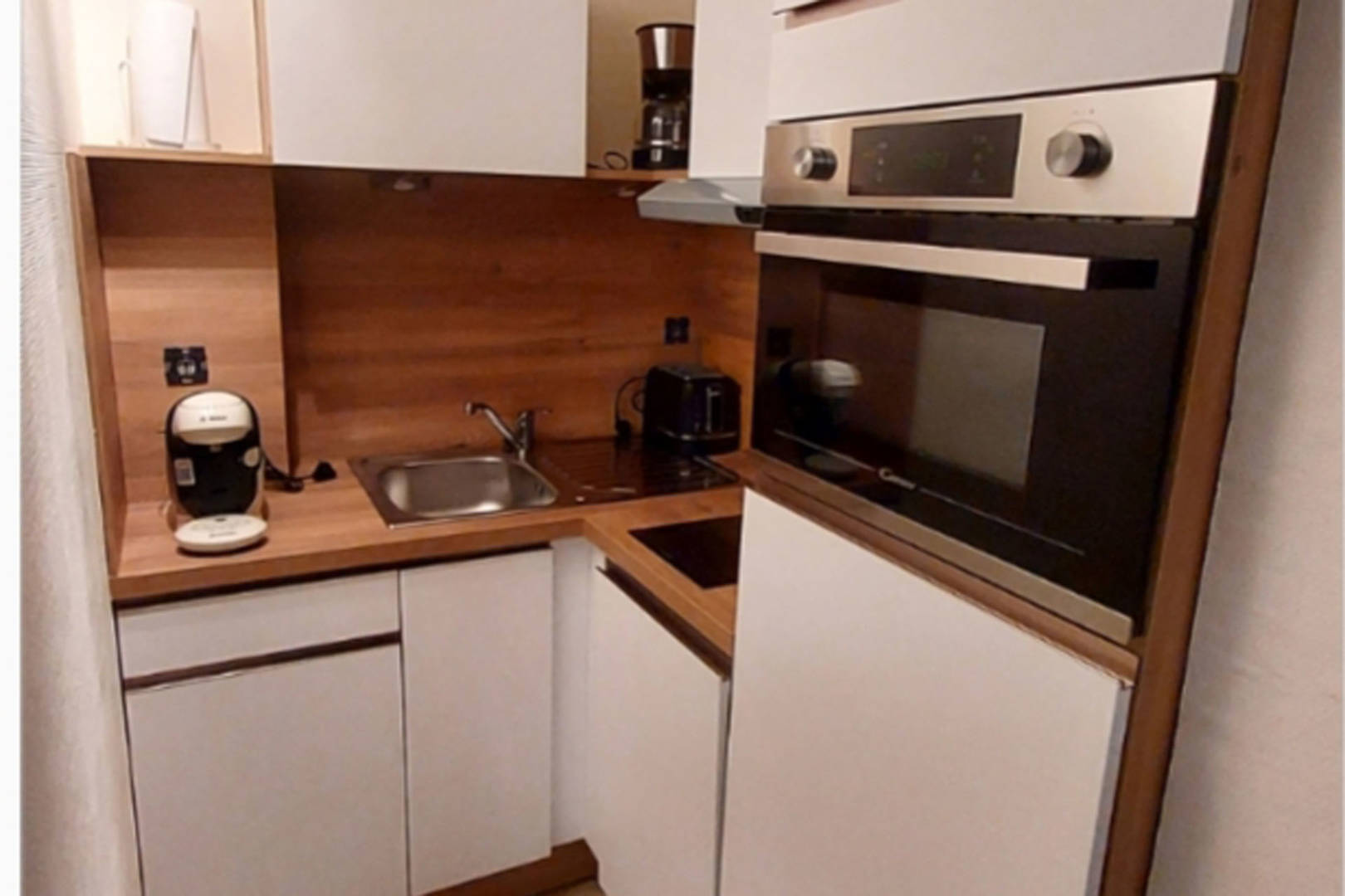 -Une cuisine équipée neuve ( Frigo-plaques – Four Micro-ondes- Cafetière Tassimo)