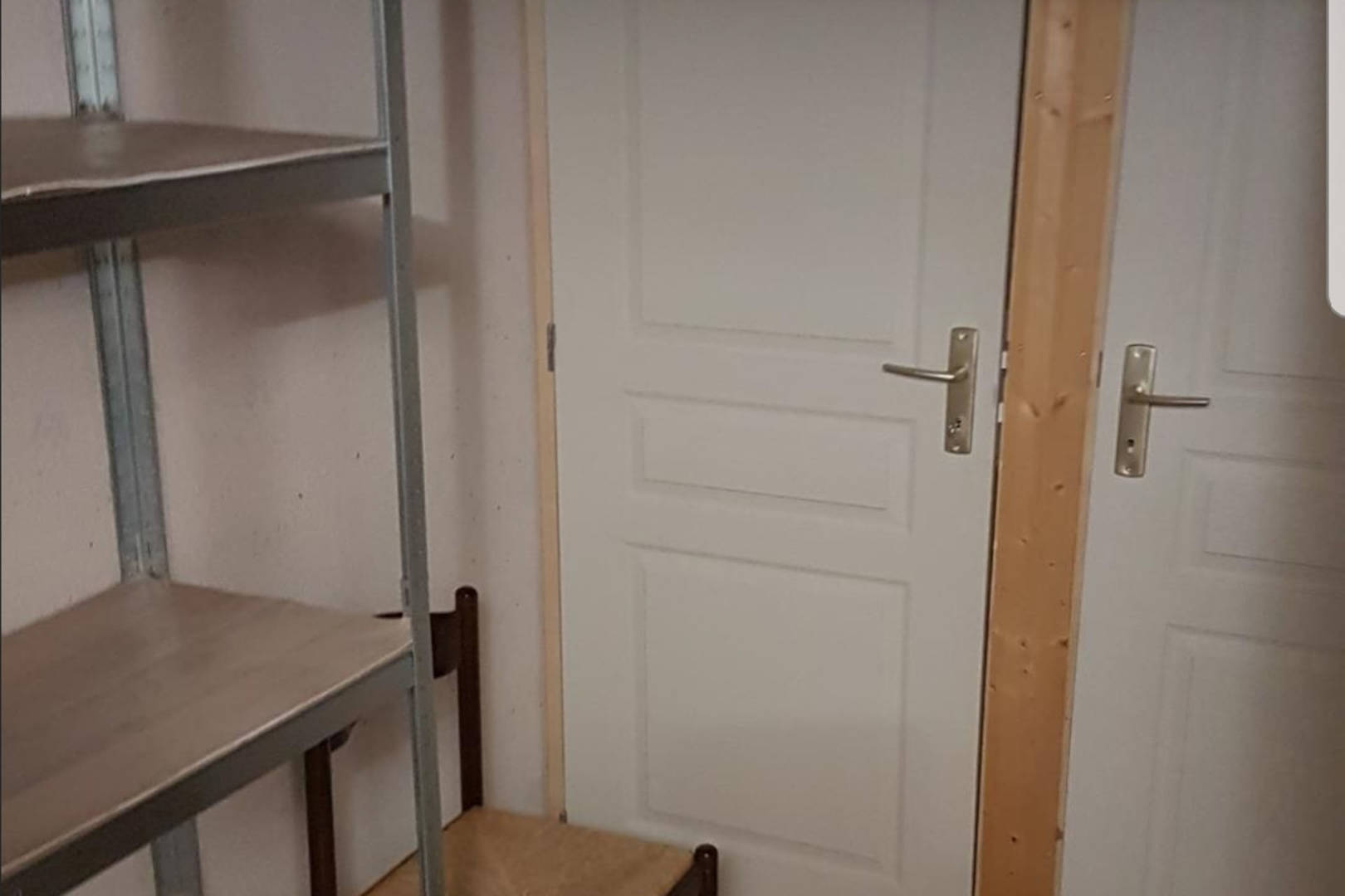 Une cave local à ski avec rangements et chauffé.