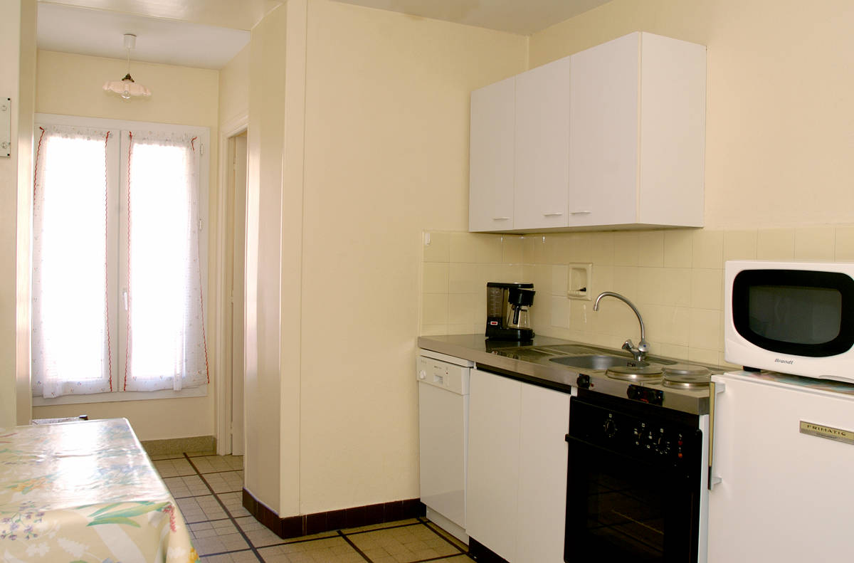 Zone semi-piétonne, calme, vue dégagée agréable, ensoleillée, hygiène assurée, proche des commerces, du marché, départ navettes gratuites hiver à 100 m.