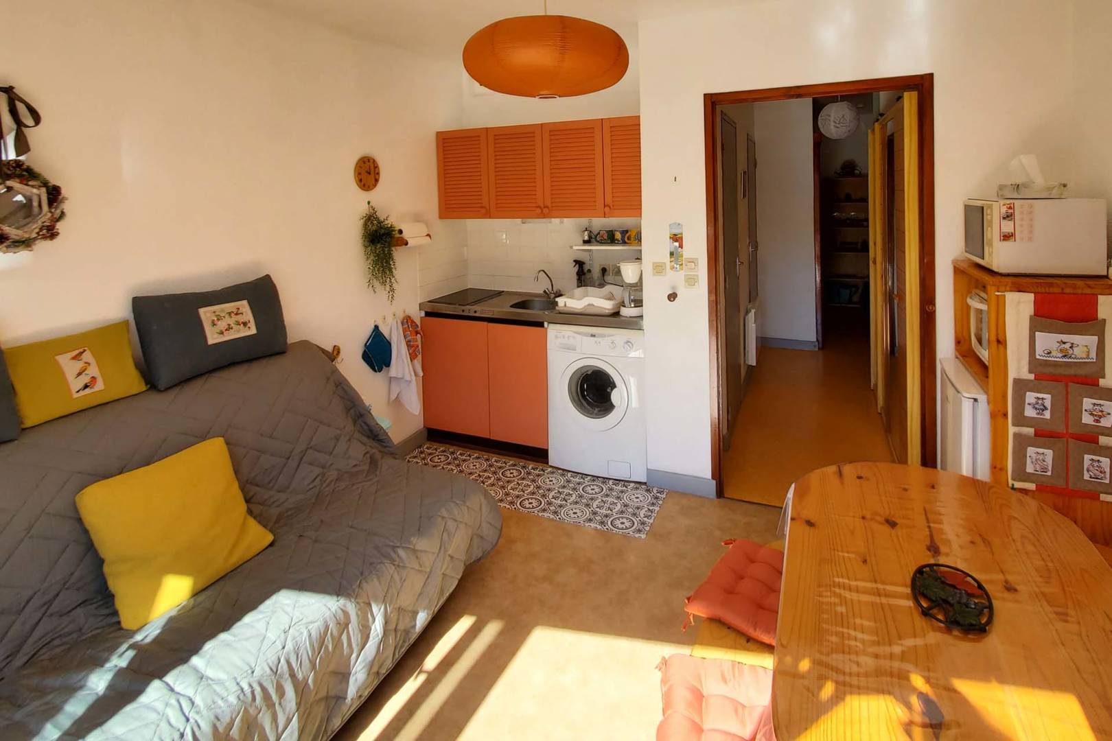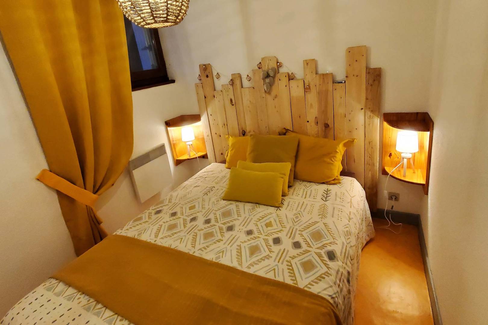 T2 comprenant une chambre avec un lit 140×190 literie neuve d’octobre 2023,une pièce à vivre avec un coin cuisine équipée d’une plaque de cuisson, d’un réfrigérateur, un four micro-ondes, un mini four, un lave linge, cafetière filtre, service à raclette, ustensiles de cuisine, vaisselle, une table , banc et tabouret, un téléviseur, une salle de bain avec baignoire, un WC. Un couloir équipé d’une grande armoire de rangement. Un balcon d’un peu plus de 4m2 sur lequel on peut manger à 4. Parkings et commerces à proximité, parc Fenestre à 5 mn à pieds, les thermes à 200m. Un box au RDC permet d’entreposer des skis ou autres. Le linge de toilette et lit ne sont pas inclus. Ballon d’eau chaude 100 litres. Le ménage est à faire avant votre départ et l’appartement doit être laissé propre.