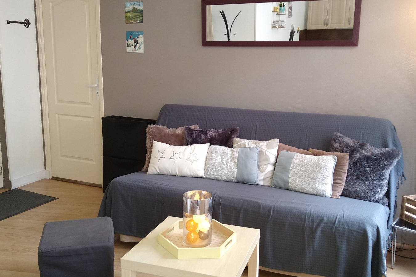 Appartement entièrement équipé comprenant : – un coin cuisine et repas avec plaques à induction, four multifonctions, réfrigérateur-congélateur, lave-vaisselle, micro-ondes, cafetière, bouilloire, grille-pain et service à raclette. – un coin séjour avec clic-clac deux personnes, TV. Mise à disposition gratuitement d’un lit bébé et d’une chaise bébé. – une chambre individuelle avec un lit deux personnes (literie neuve), grand placard de rangement, bibliothèque avec des livres adultes et enfants, jeux de société. – une salle d’eau avec douche, WC et lave-linge – un digicode à l’entrée de l’immeuble – un local à skis individuel Parking gratuit en face de l’immeuble. Appartement non fumeur. Les navettes hiver circulent tous les jours pendant les vacances scolaires et les week-ends hors vacances.