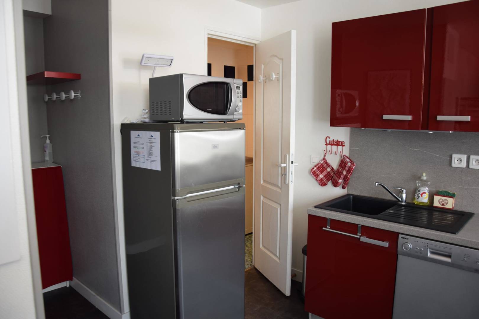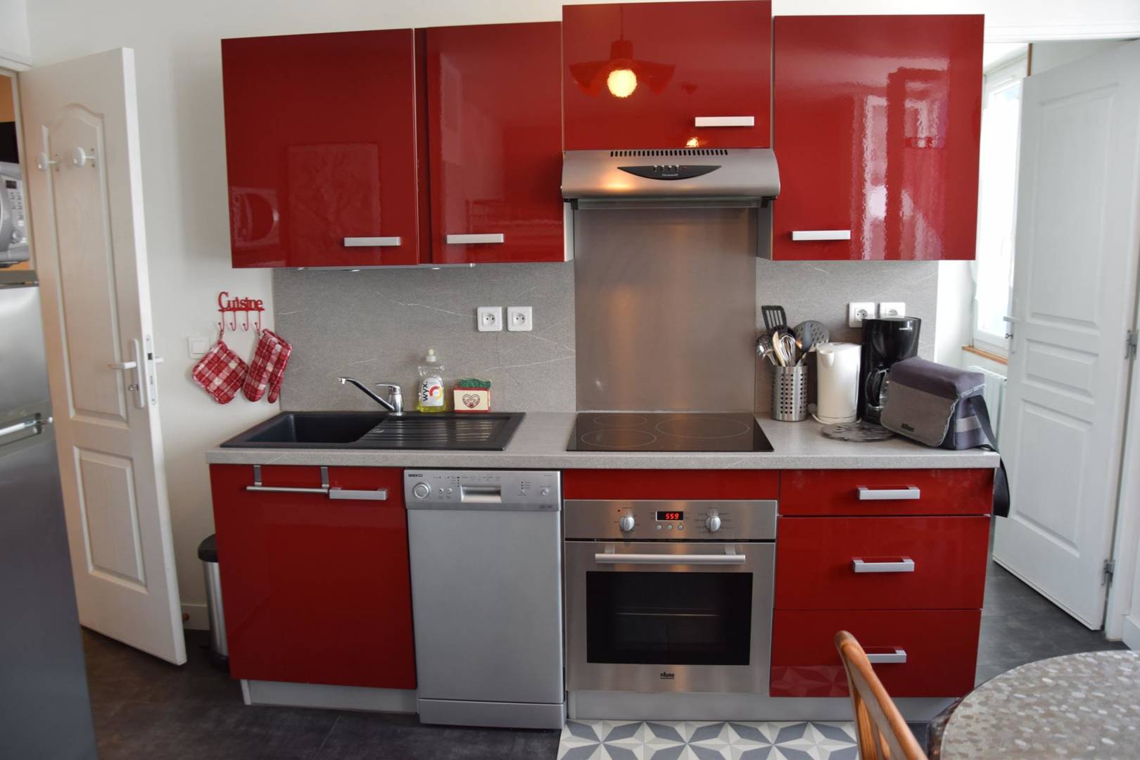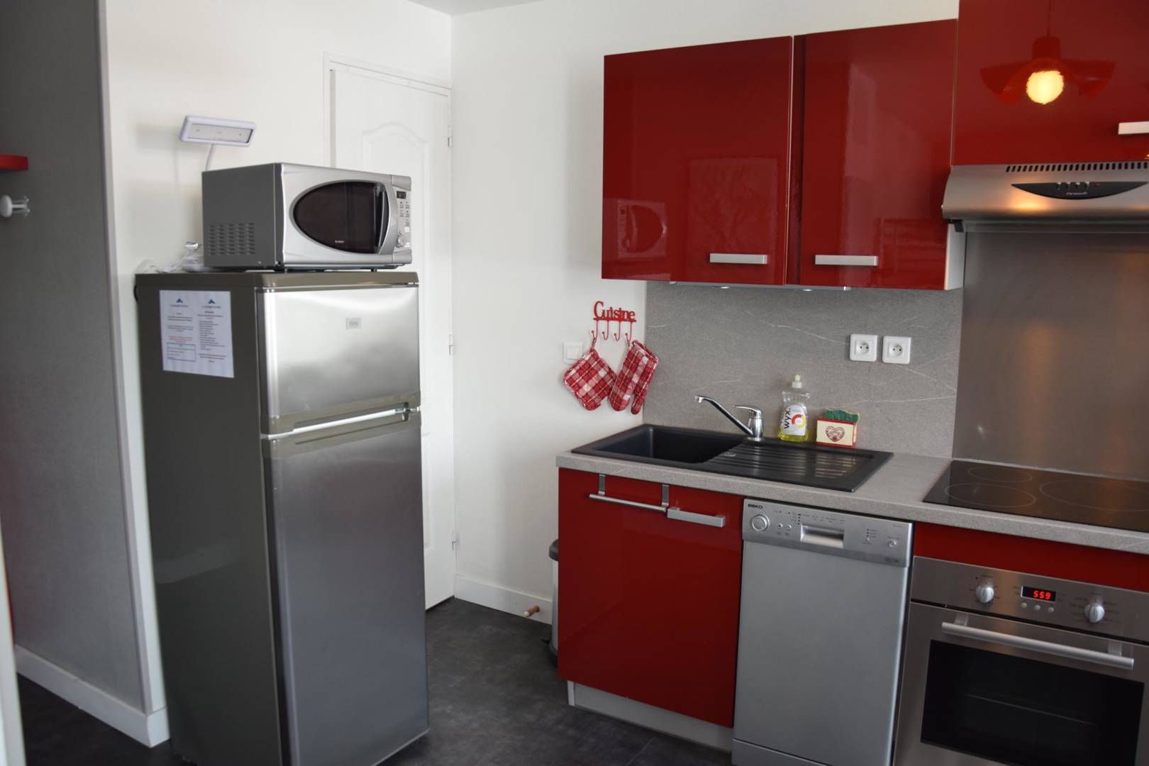– Cuisine entièrement équipée : plaques à induction, four multifonctions, réfrigérateur-congélateur, lave-vaisselle, micro-onde, cafetière, bouilloire électrique, grille-pain et le plus essentiel : le service à raclette.