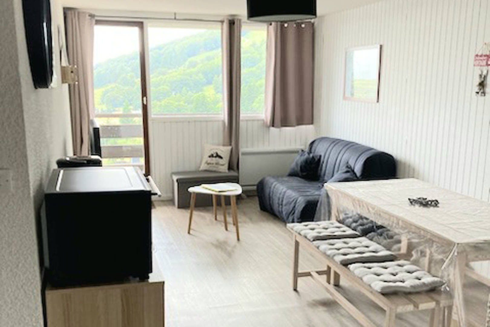 Agréable appartement de 44 m2 accueillant jusqu’à 8 personnes avec vue dégagée sur le lac « des hermines » et les montagnes. Situé résidence « le buron ».Se trouvant au pied des pistes et de la rue commerçante.