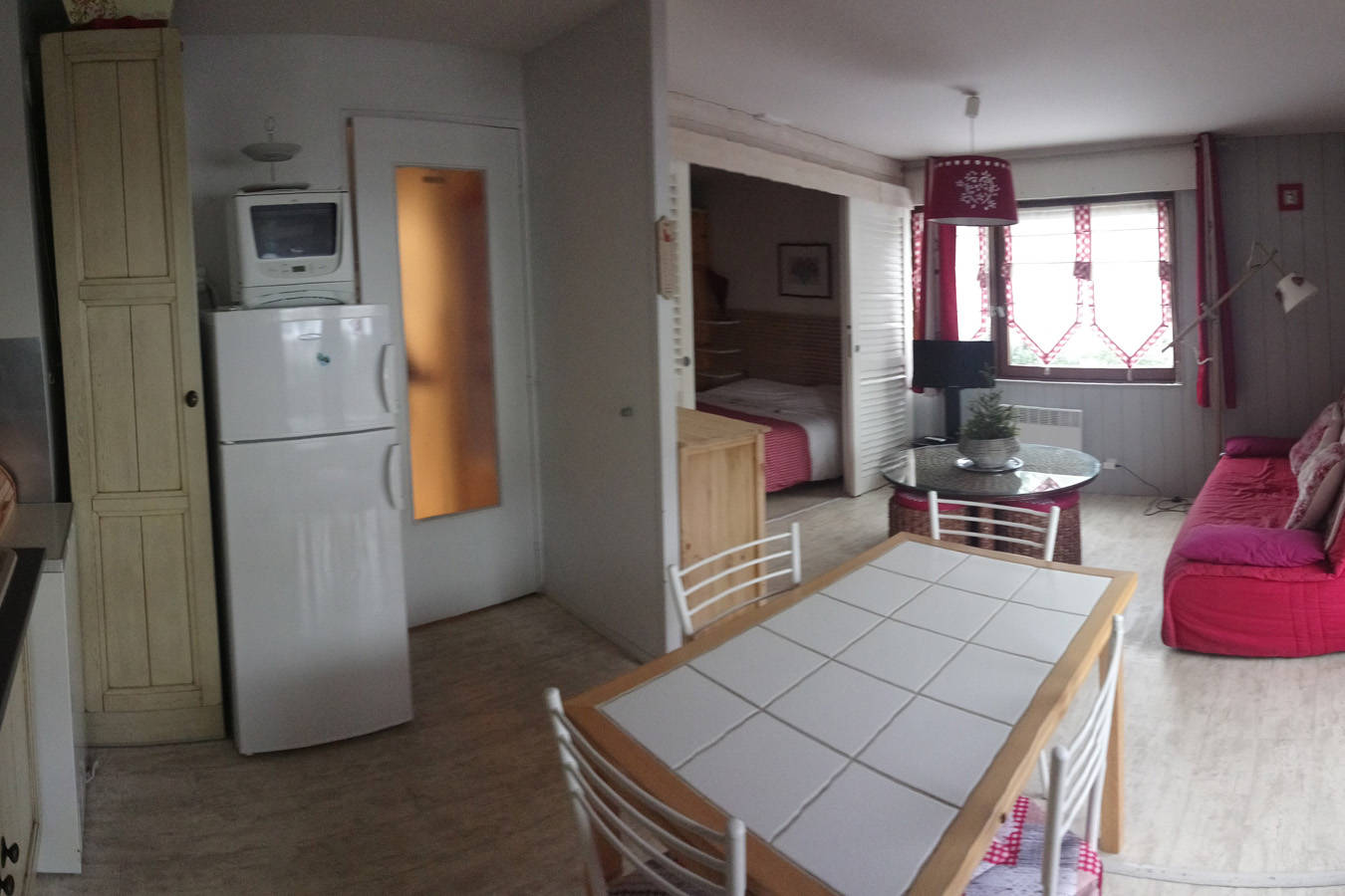 Le logement est entièrement équipé, avec douche, WC séparés et balcon.