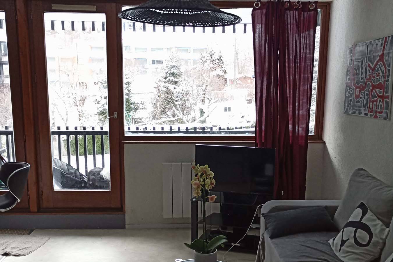 Le logement se compose d’une cuisine, salle de séjour et salle à manger, salle de bain, WC, balcon. Grande chambre avec séparation, 1 lit 2 personnes / 2 lits 1 personne / un clic-clac 2 personnes (total couchages 6 personnes).Télévision dans chambre et salon. Parking privé, local à ski, à 400 mètres du centre-ville, de la navette pour les Thermes, des navettes pour le ski fond et alpin (circulent les week-ends et vacances scolaires). Vue sur le Sancy, digicode, ascenseur, parc de jeux et plan d’eau à 250 mètres, funiculaire à 350 mètres. Boitier Wi-Fi.