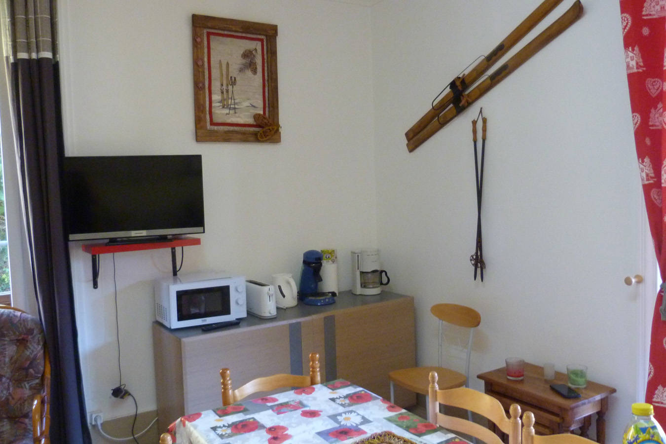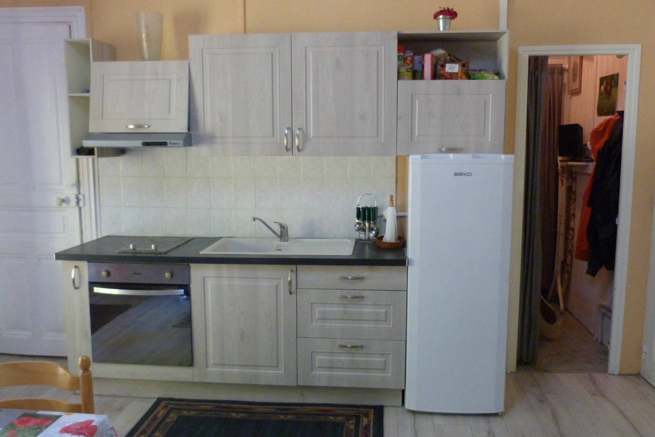 L’appartement est composé d’un salon d’environ 25 m2 avec cuisine aménagée et bz pour 2 personnes, d’une chambre de 10 m2 avec lit double, lavabo et un toilette, d’un coin nuit d’environ 5m2 avec machine à laver et petit rangement (aspirateur) ainsi que d’une salle de bains avec un toilette(…)