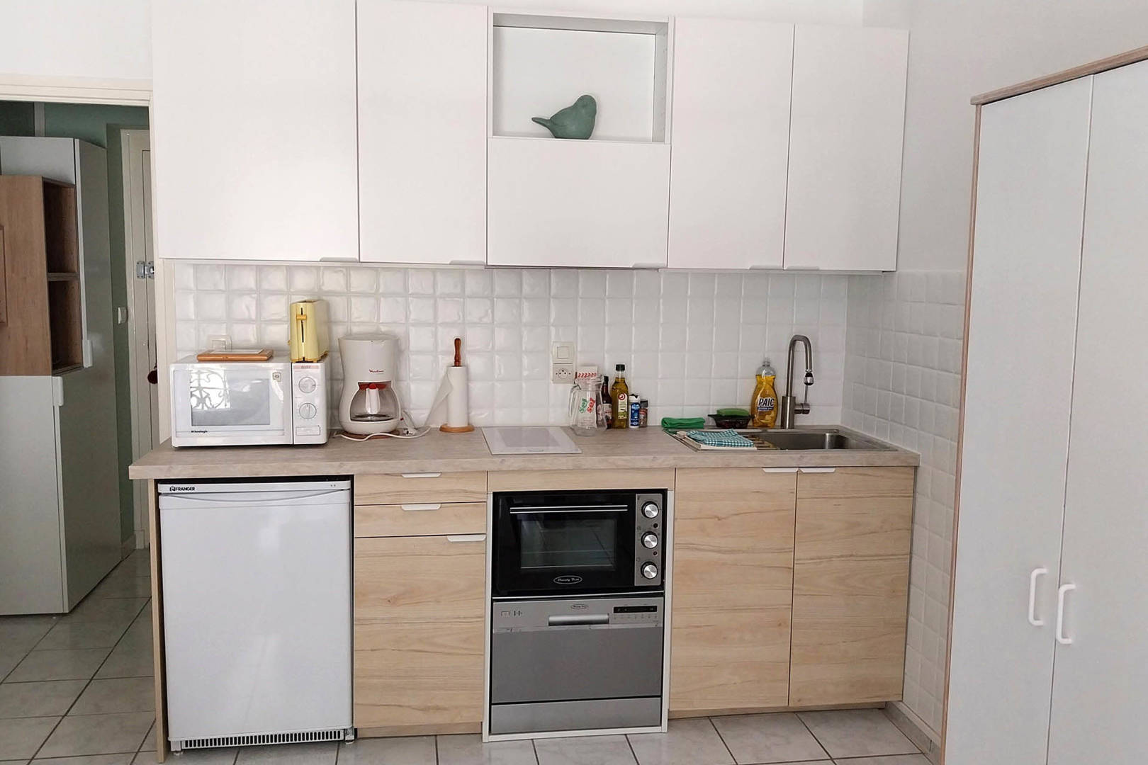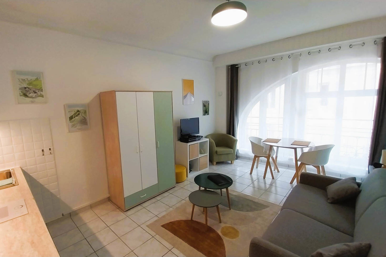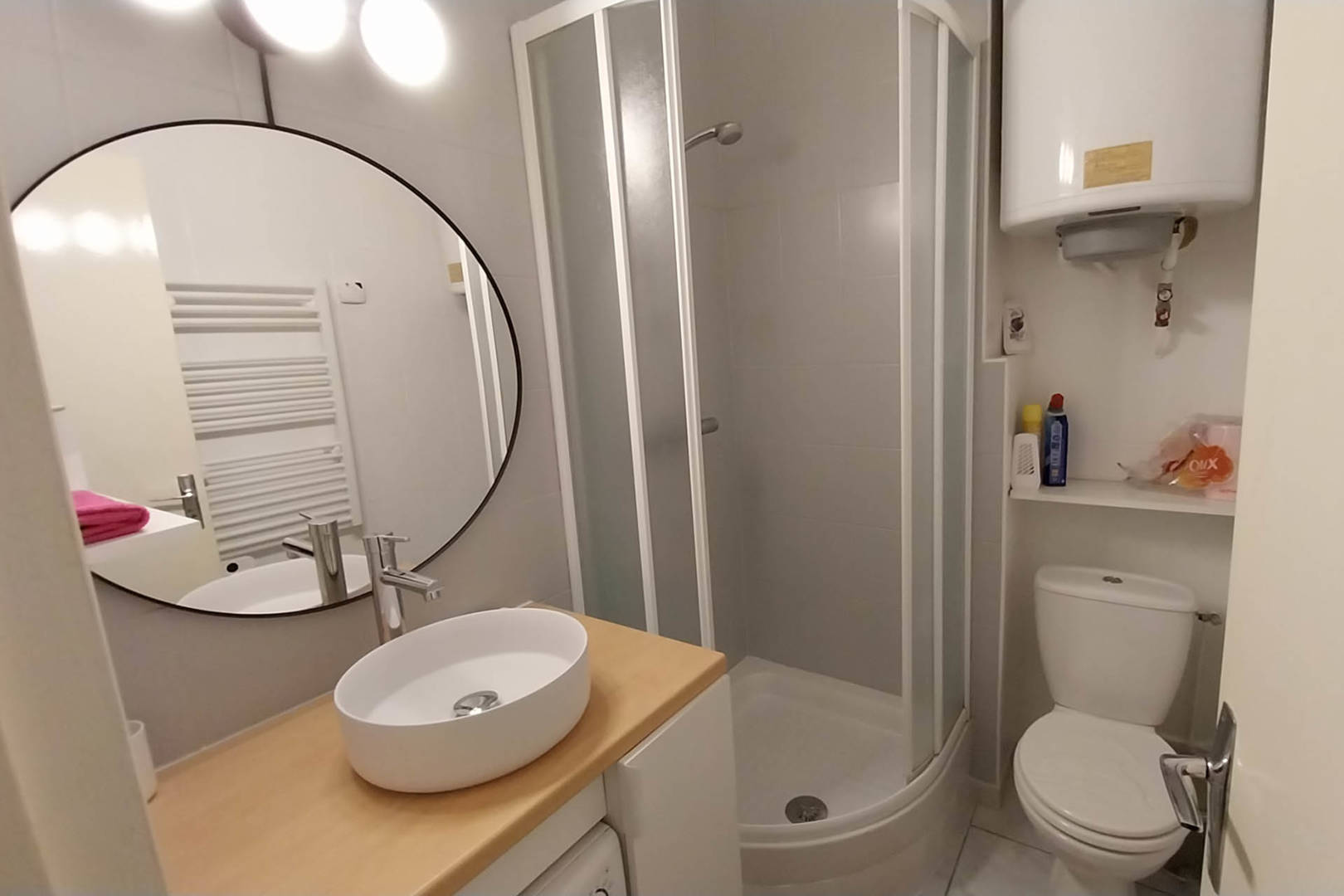 L’appartement, rénové, se compose d’une entrée avec rangements, d’une pièce de vie avec cuisine ouverte et un canapé lit de qualité (matelas 140 X 190 cm densité 40 kg/m3, sommier à doubles lattes larges), d’une armoire de rangement, d’un coin repas avec une table et deux chaises, un fauteuil et d’une salle d’eau avec douche, meuble vasque, WC et sèche serviette.