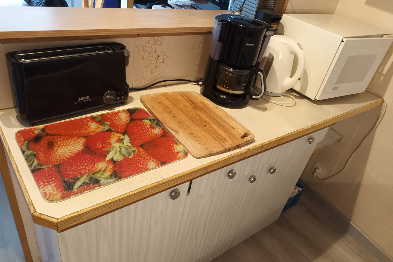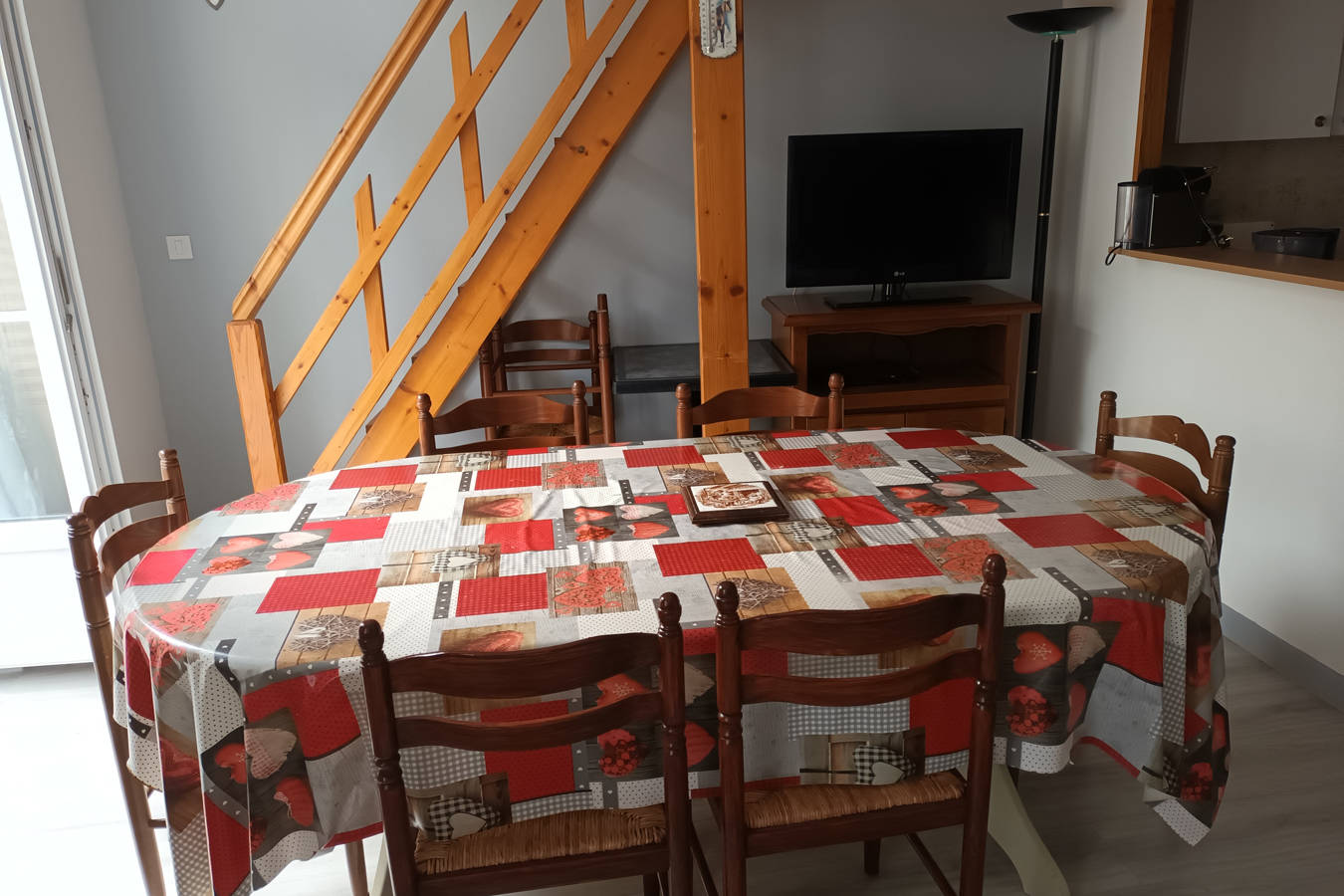 Belle pièce de vie avec cuisine américaine. Possibilité coin couchage avec clic-clac en 140. Le logement se compose :