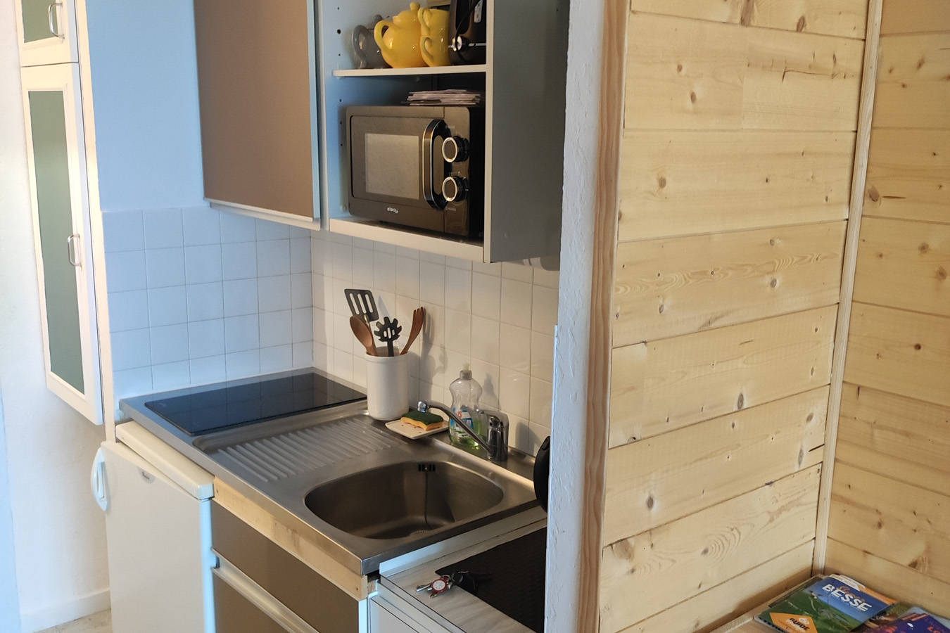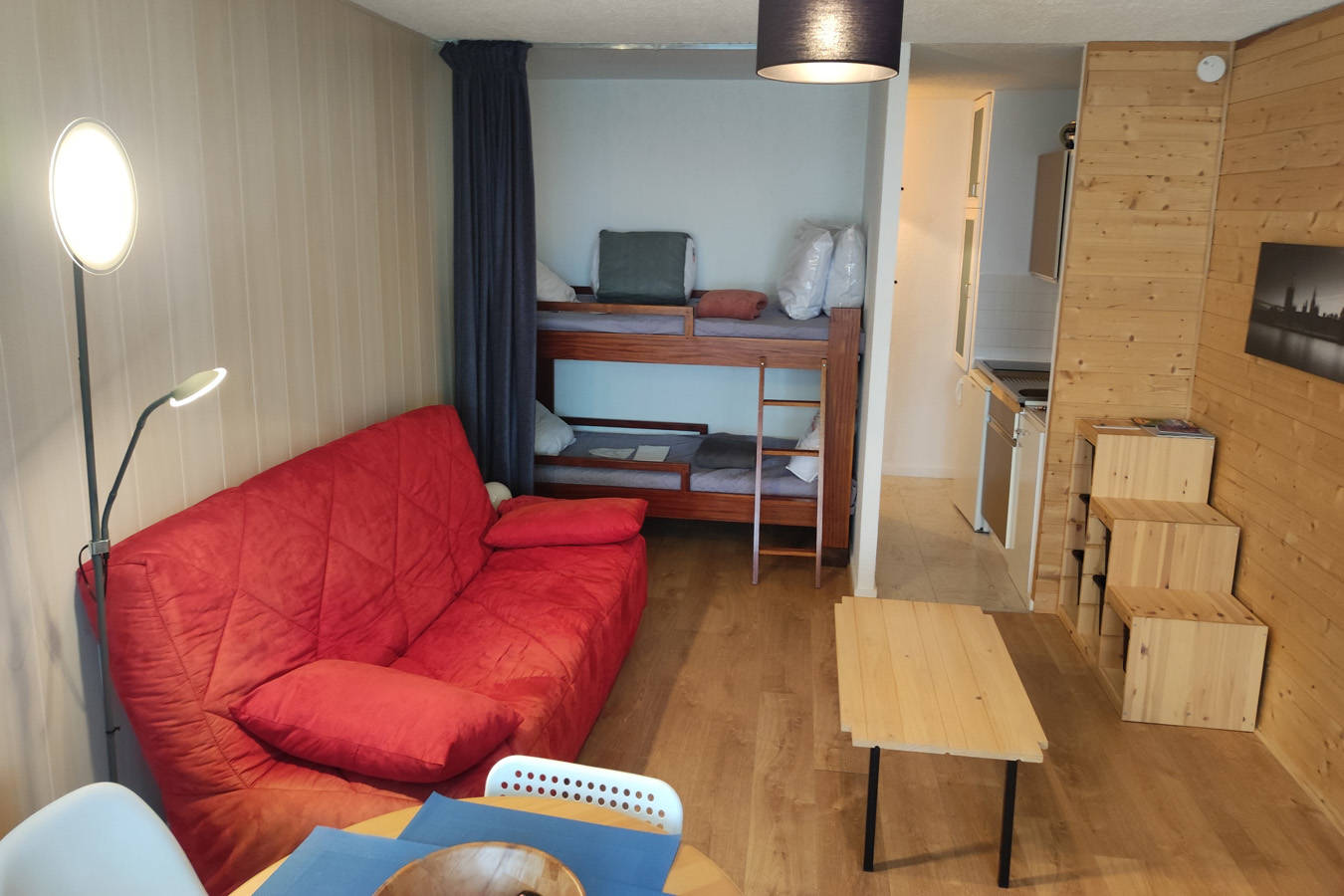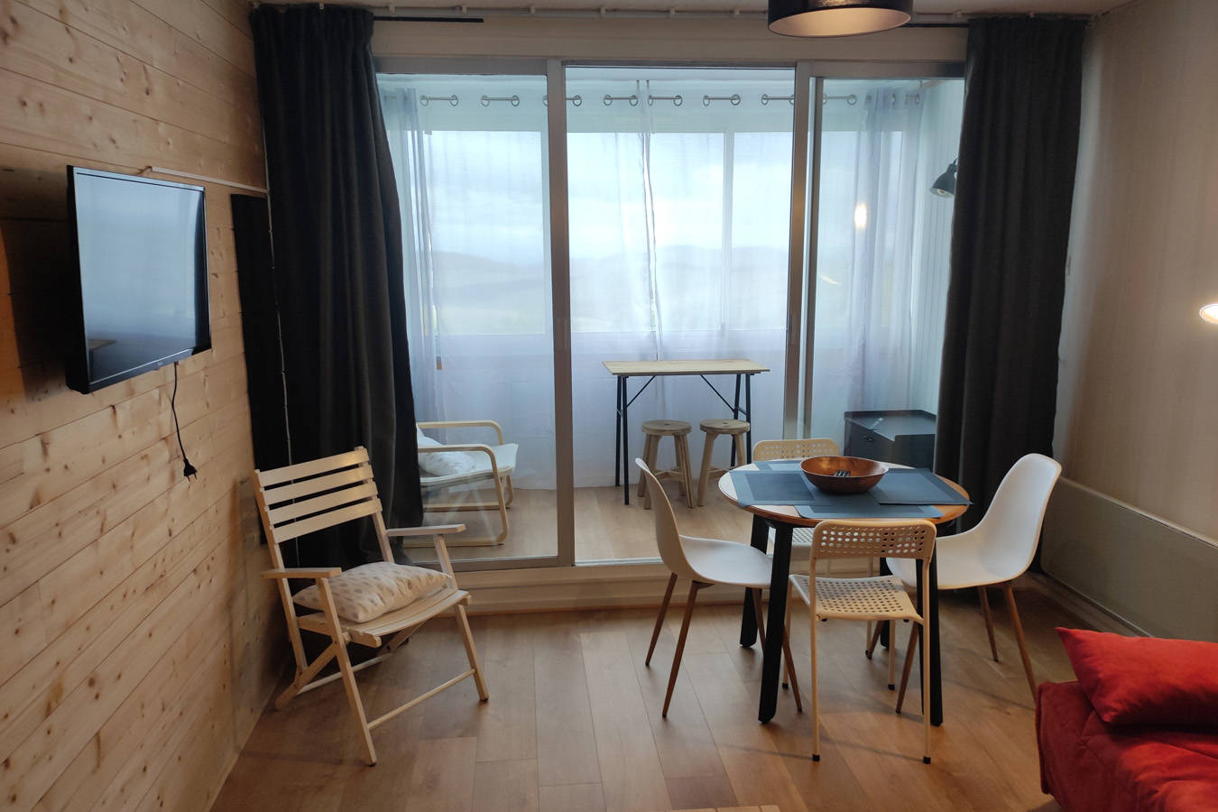 Appartement de 26 m2 pour 4 personnes, avec son coin cuisine équipée (plaque à induction, mini four, micro ondes, réfrigérateur, services à fondue et à raclette, bouilloire, cafetière, grill pain, sèche-cheveux, téléviseur, aspirateur, couettes et couverture…) et sa belle loggia aménagée pour apéritifs avec vue sur les volcans et le(…)