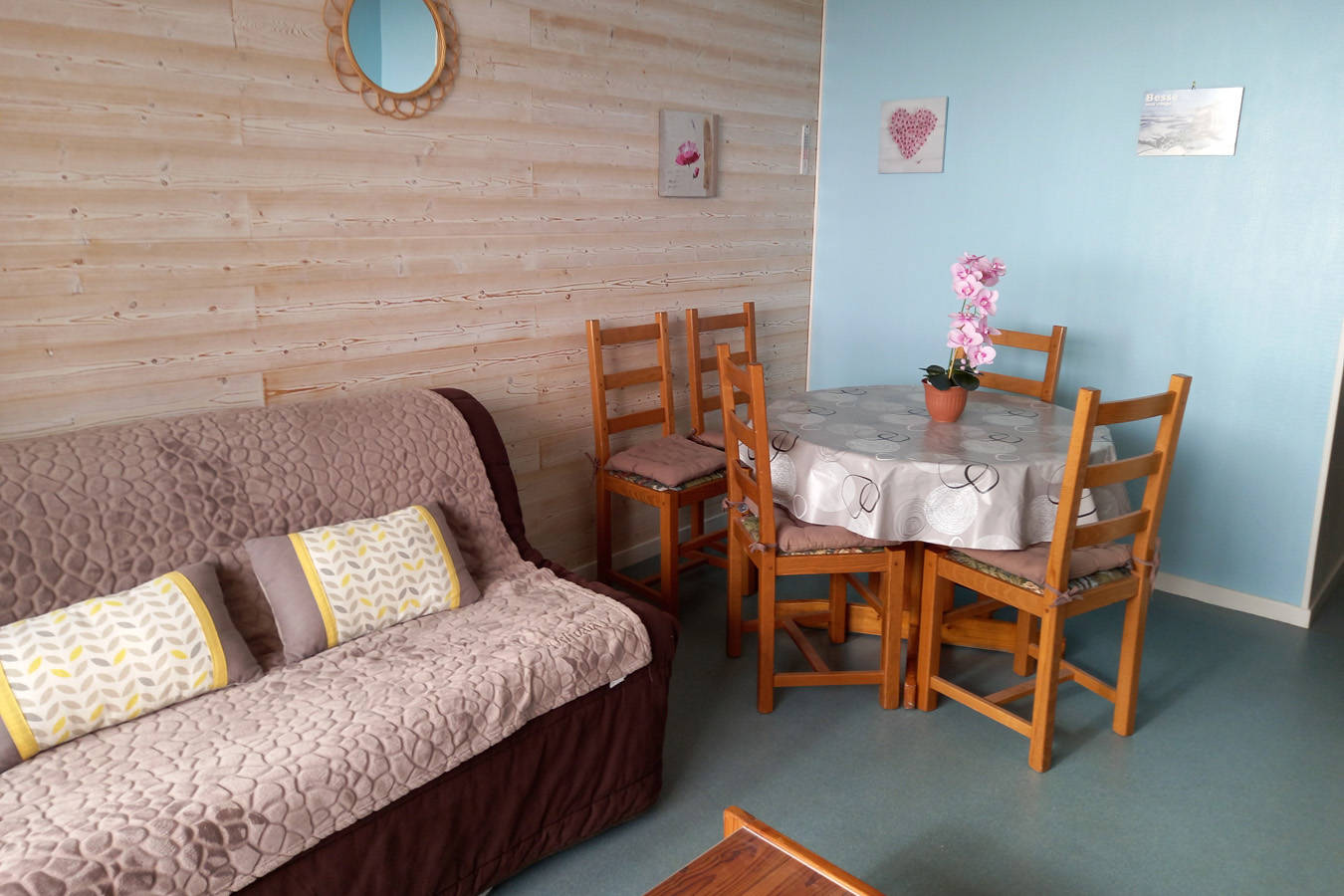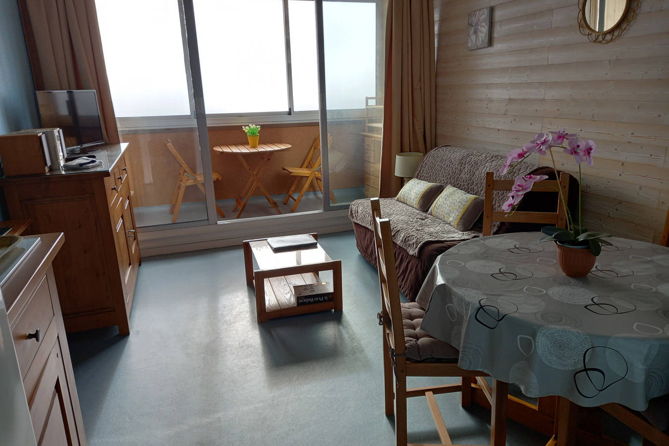 Appartement de 25 m2 + loggia 4 personnes. Coin cuisine équipée; lave-vaisselle. Wc séparés. Lits superposés dans une alcôve.