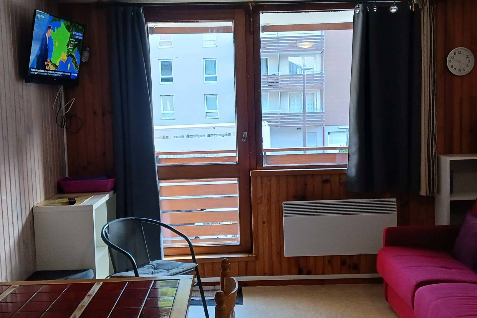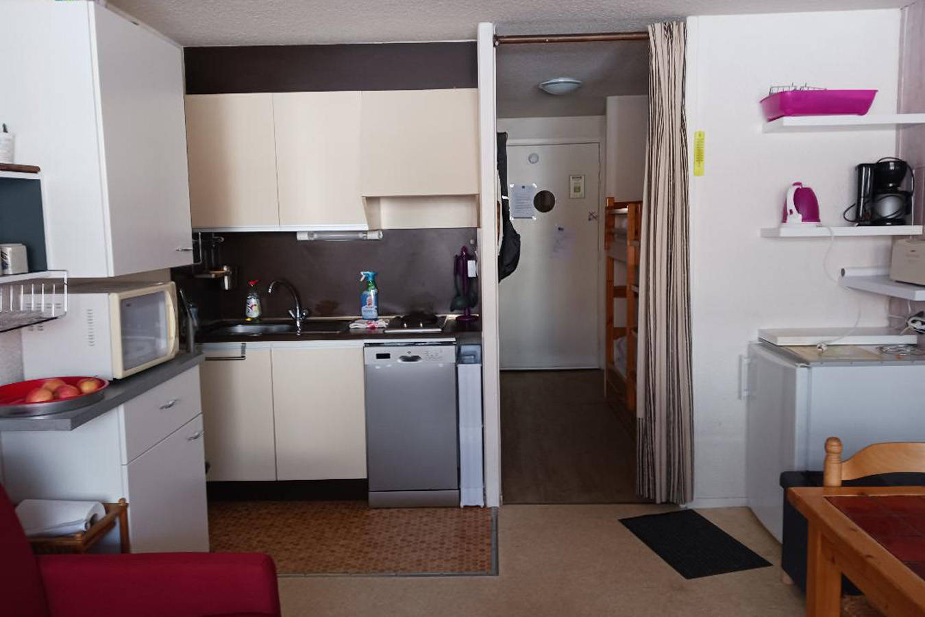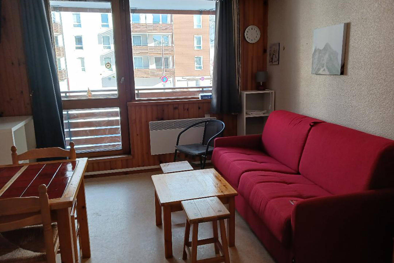Studio avec balcon (donnant sur rue principale) situé au 1er étage avec ascenseur dans une résidence centrale près de tous les commerces, des pistes, du lac, du centre aqualudique et de l’office du tourisme.