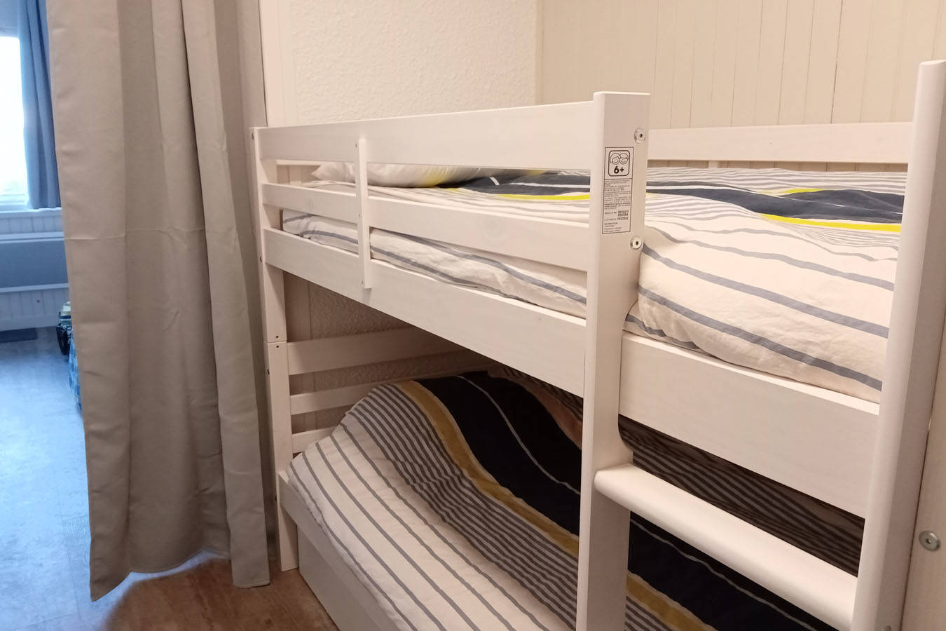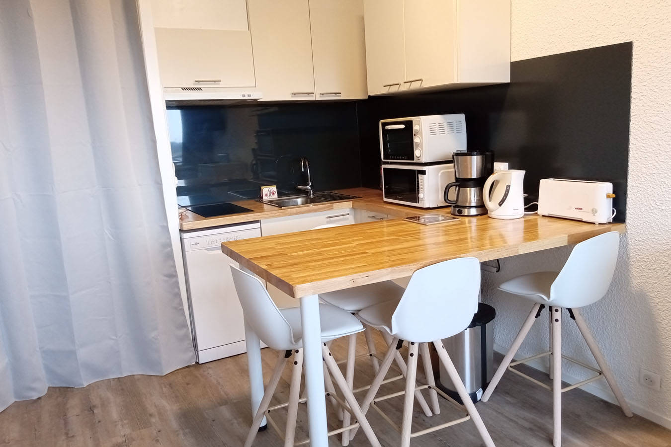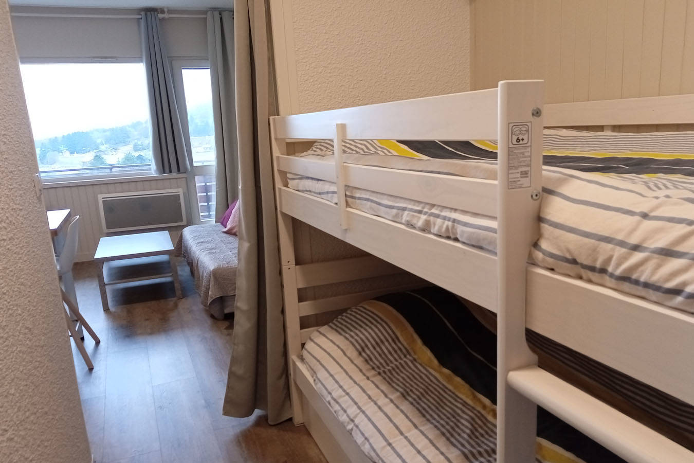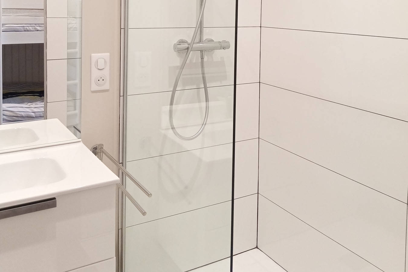 Studio : canapé clic-clac + 2 lits superposés, douche italienne, TV, lave-vaisselle