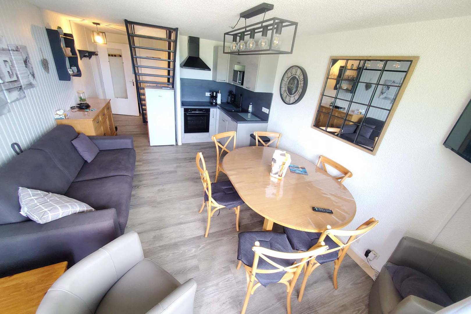 Au cœur du centre station de Super-Besse, cet appartement de type duplex sur deux étages pour 8 personnes saura vous charmer par son emplacement mais aussi par la vue.