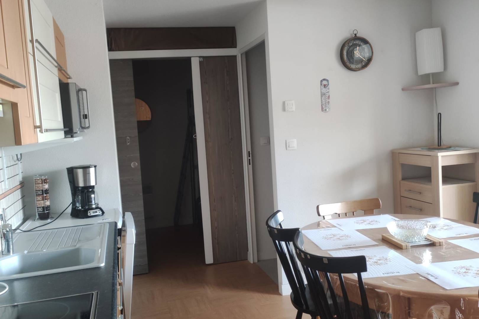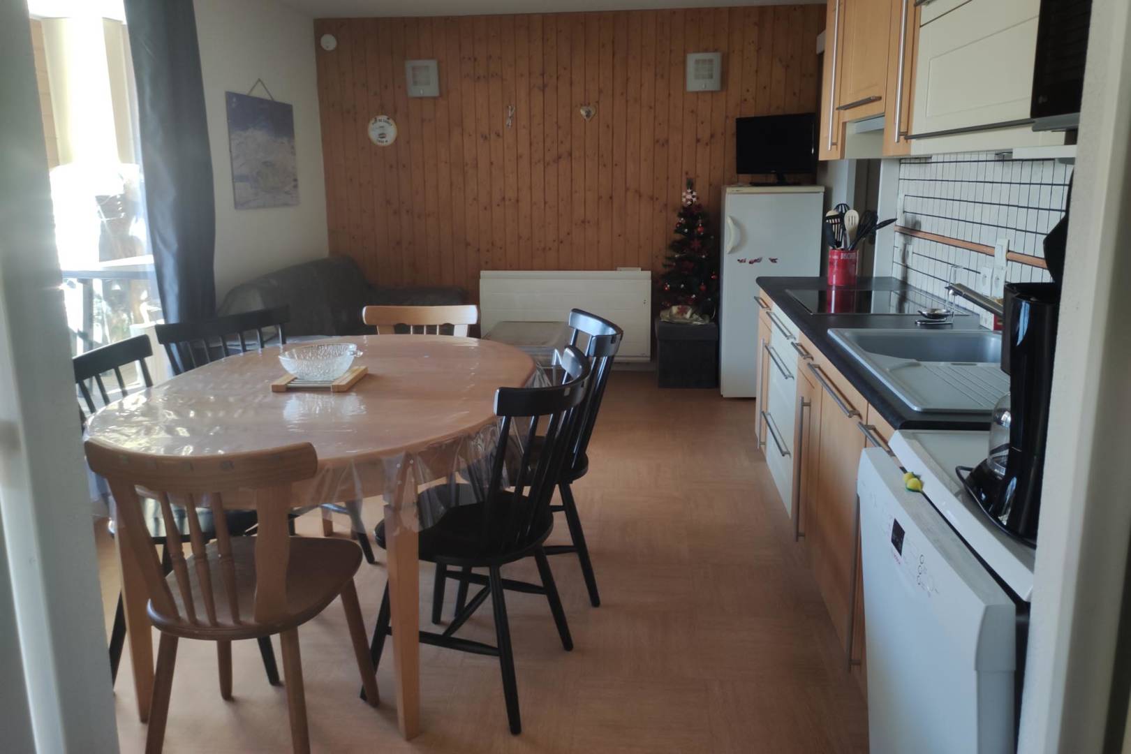 Appartement spacieux 51m2 équipé d’une cuisine aménagée (frigo avec petite case congélateur, four mixte plaque -four + fait micro onde) dans le séjour avec coin salon. Une salle de bain équipée avec douche, vasque et meubles de rangement et lave linge.
